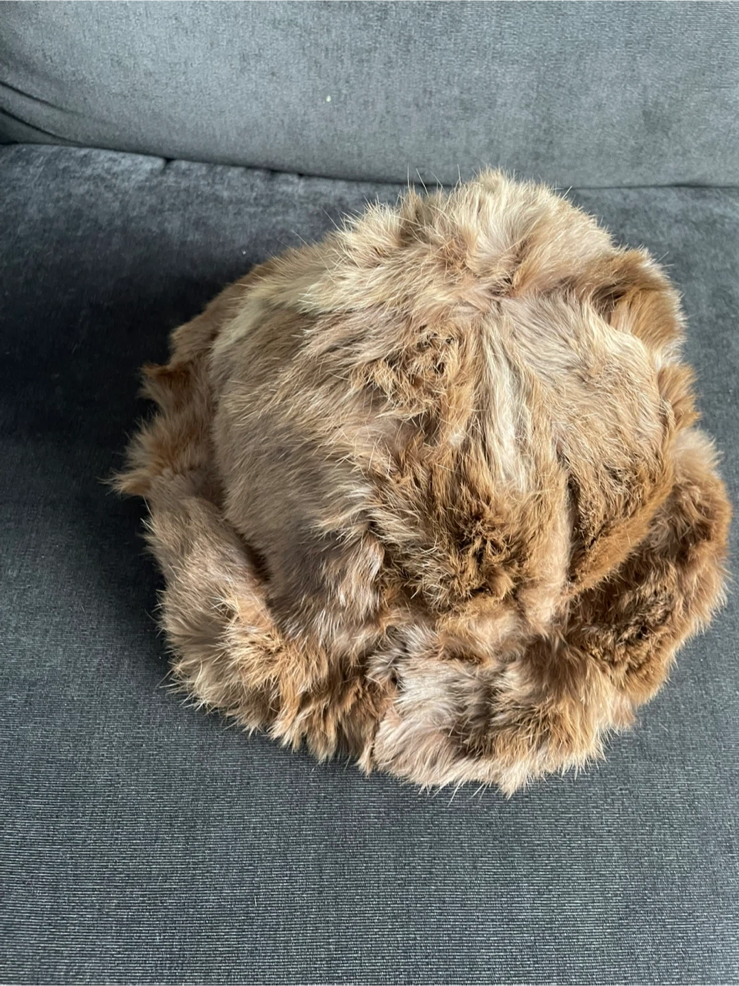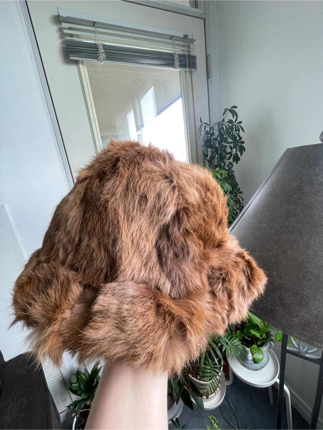 Selling a cozy brown fur hat. It's in good condition and ready to keep you warm this winter!