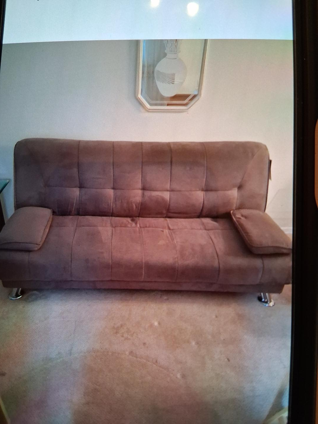 10Selling a brown futon sofa bed. It's in used condition but still has lots of life left! Perfect for a living room or spare bedroom.