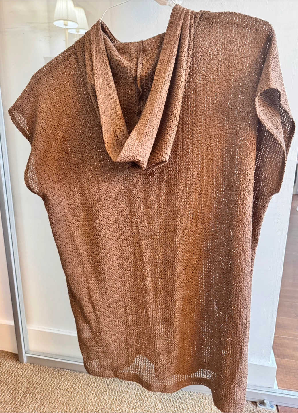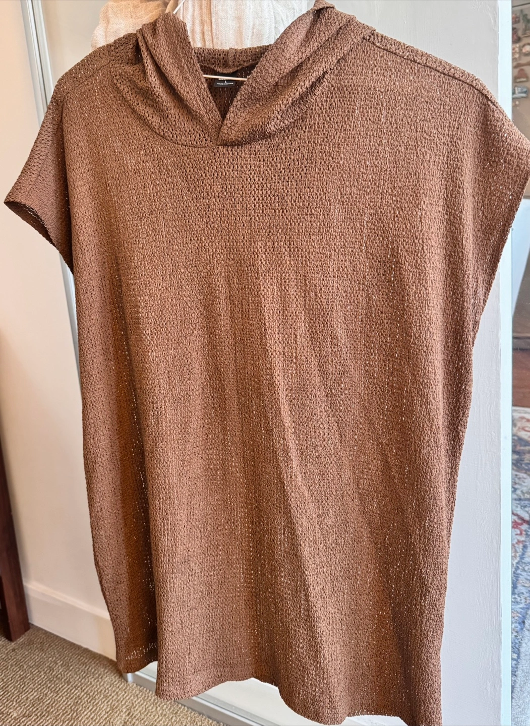 46Hooded top in a warm brown colour. Short sleeves. A lightweight material with a textured appearance.