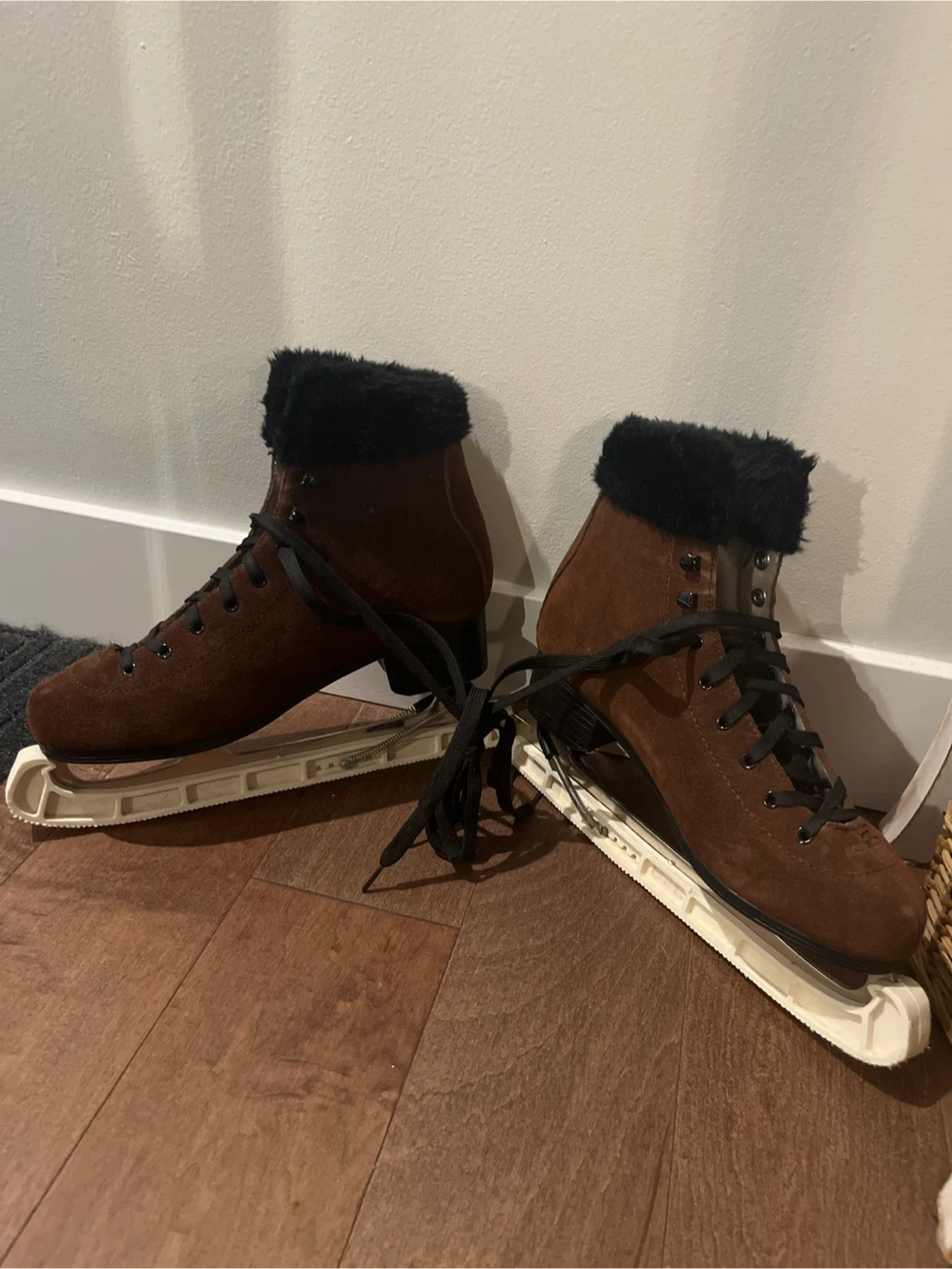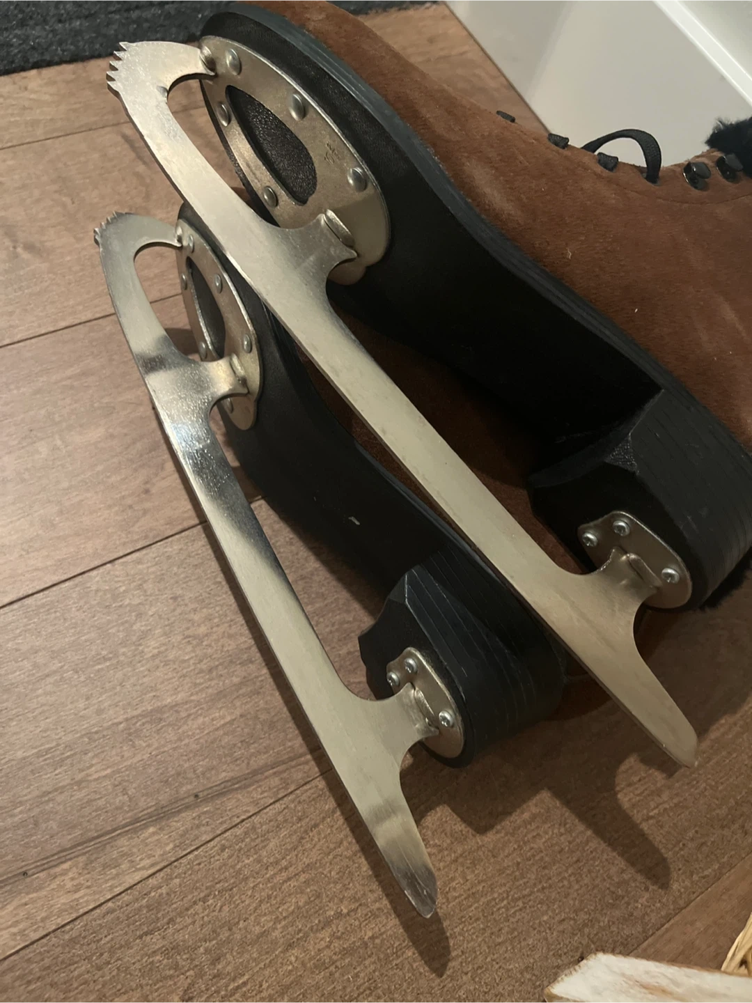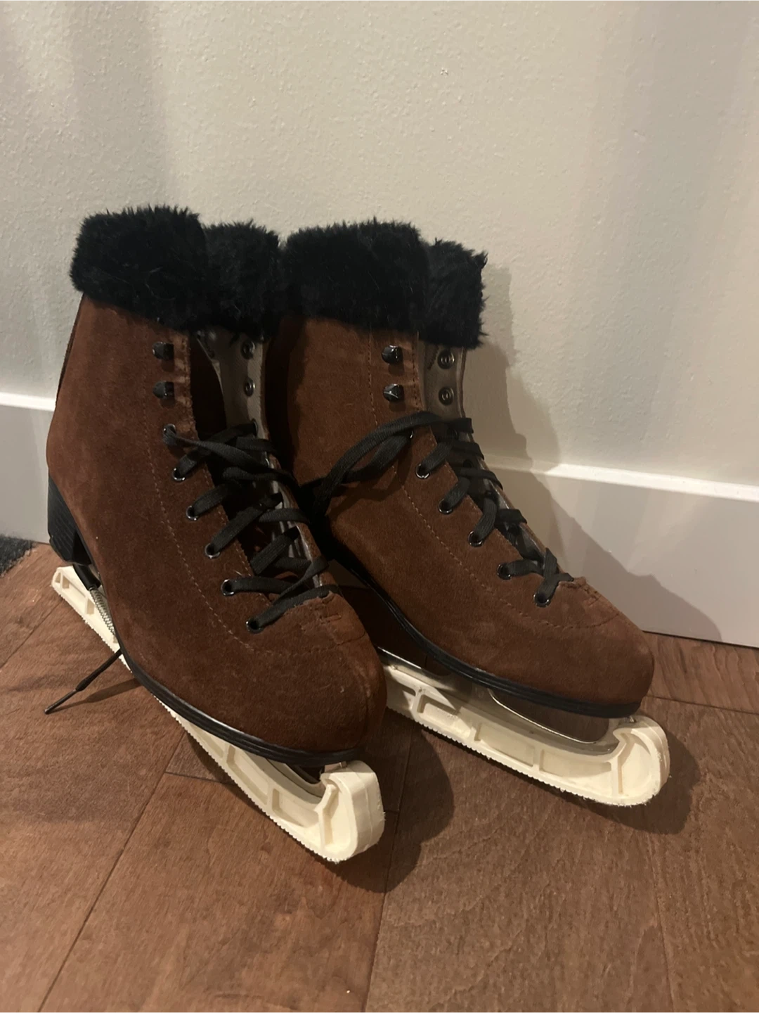 60Selling a pair of brown ice skates. They are in great condition and ready for some fun on the ice this winter. Sharpening likely needed, not used in a decade. Ladies size 10, super comfortable compared to the traditional white skates. Comes with white guards.