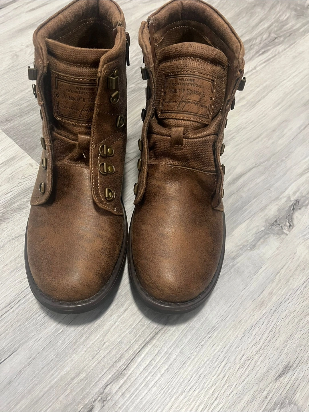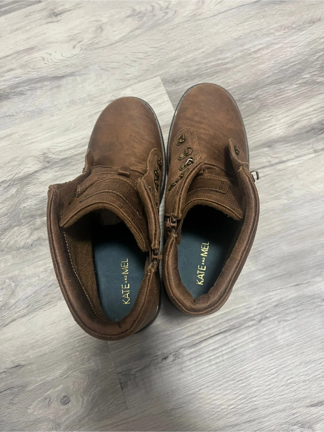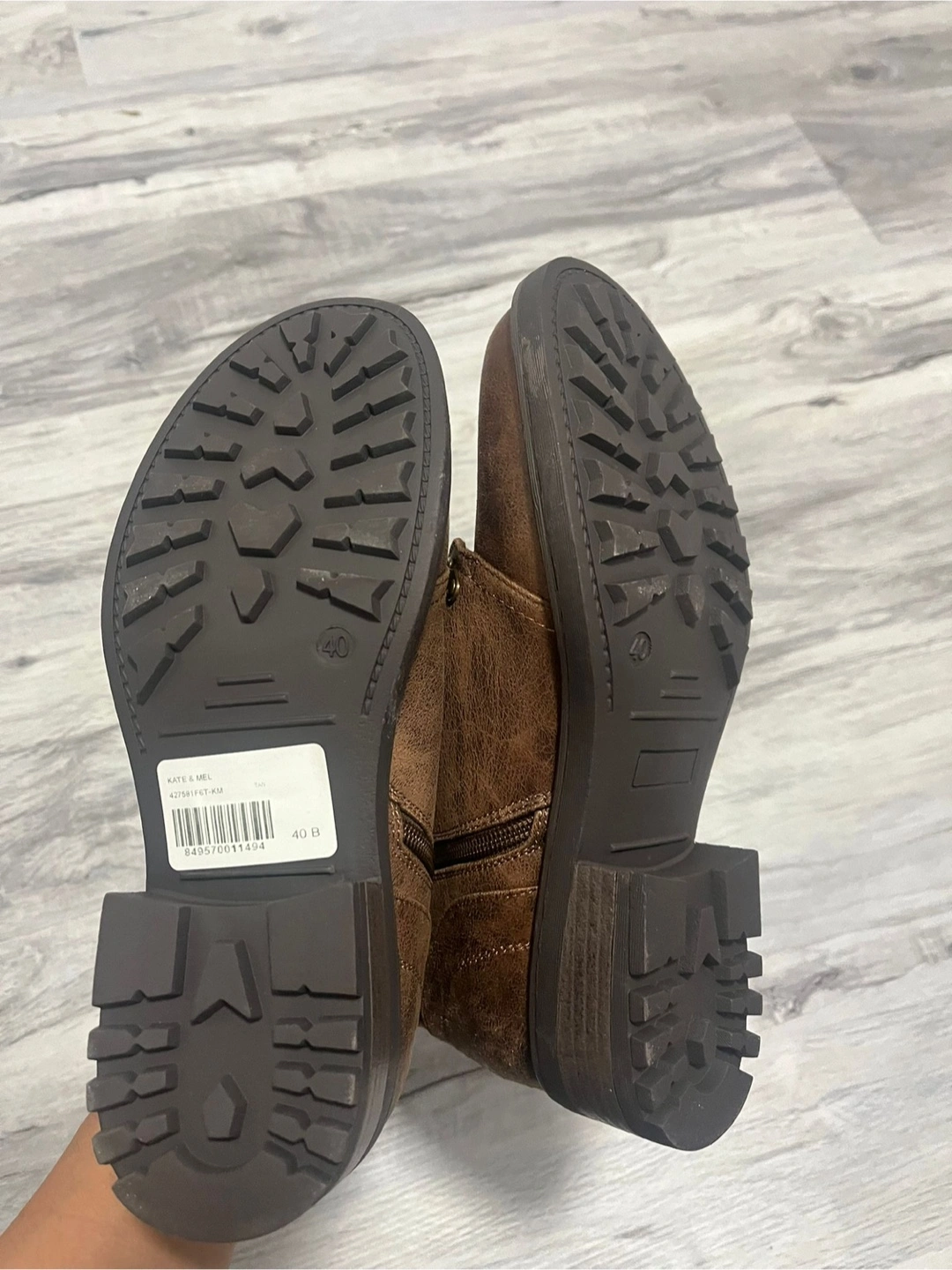24Brown leather ankle boots. Lace-up and zip closure. Size 40. Durable sole. Stylish and comfortable. US9 women.