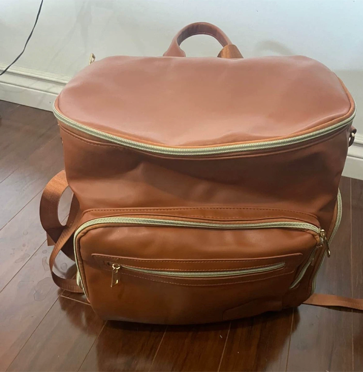 59Selling a brown leather backpack. It features multiple zippered compartments and adjustable straps. Perfect for everyday use!