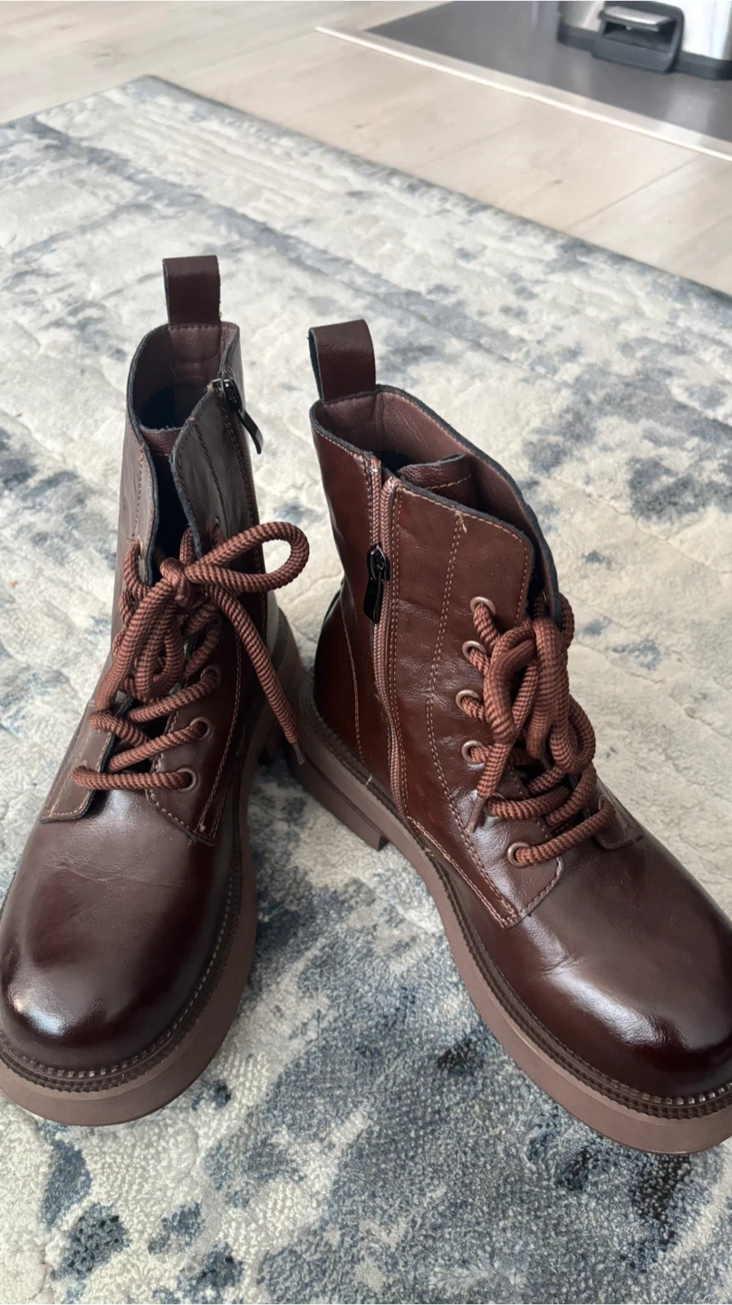 65Here are some stylish brown leather boots! They have laces and zippers for easy wear. Perfect for adding a touch of classic style to any outfit