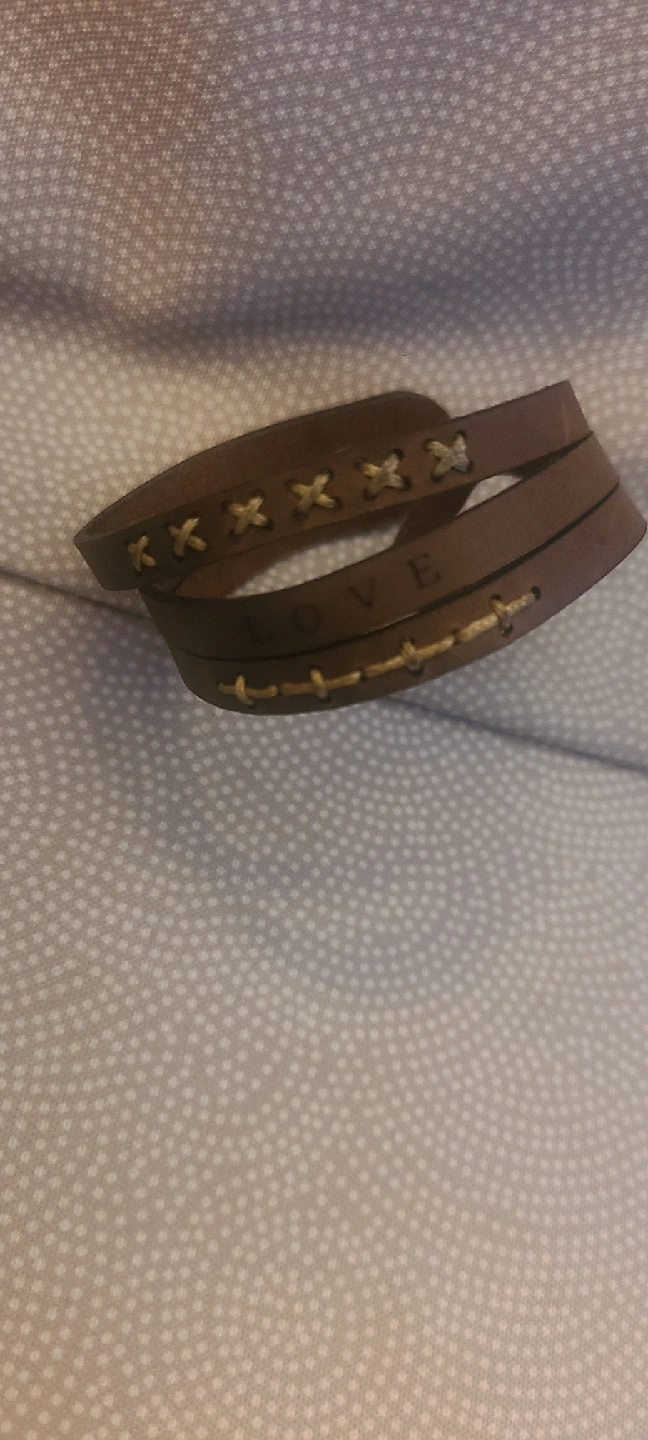 1000+Check out this stylish brown leather bracelet! It features a unique design with the word "LOVE" subtly incorporated. It's a great accessory to add a touch of understated charm to any outfit. The bracelet is ready to be enjoyed!