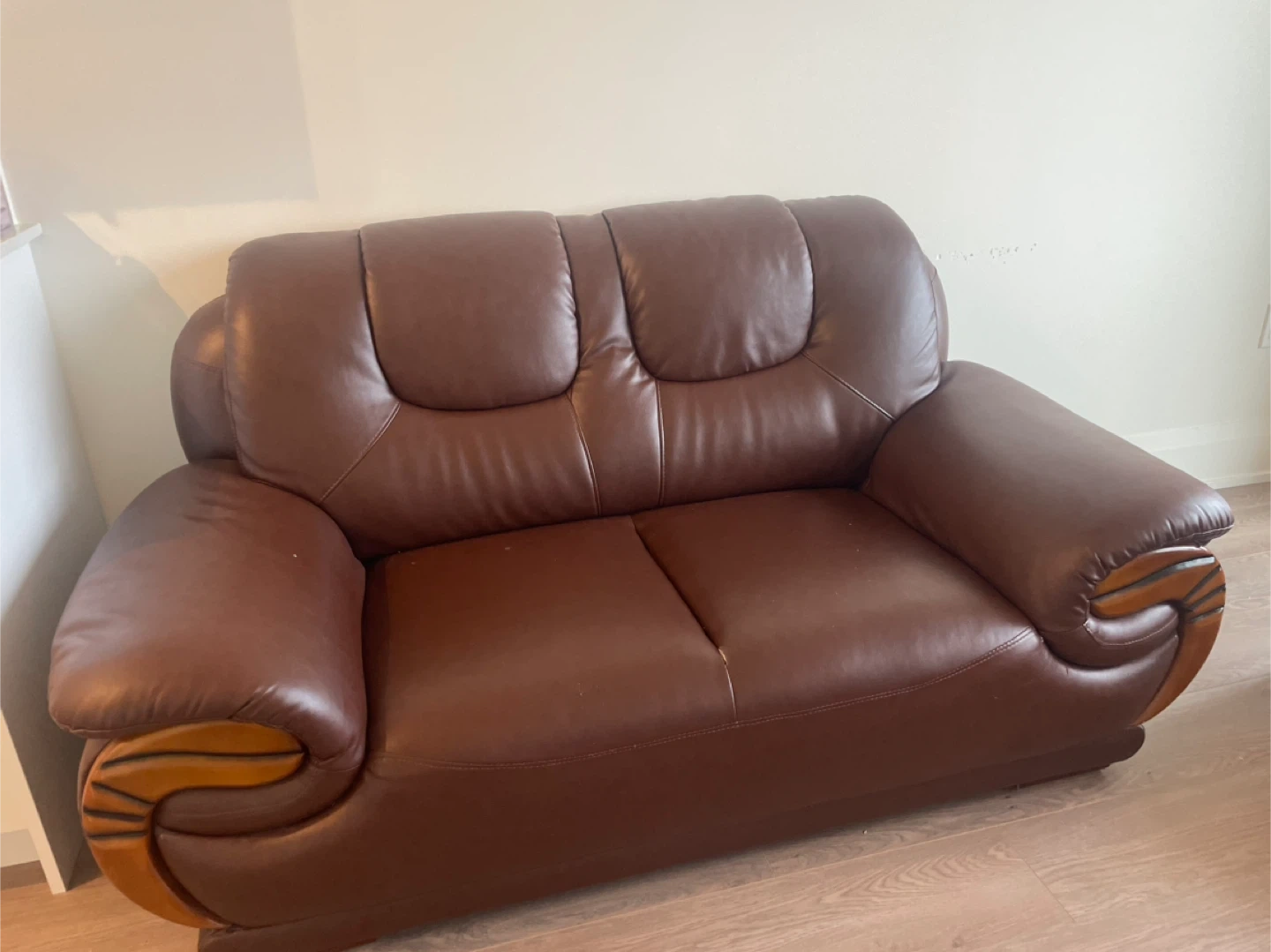 Selling a comfy brown leather loveseat. It's in good condition and would look great in any living room or den. Perfect for relaxing and watching movies!
