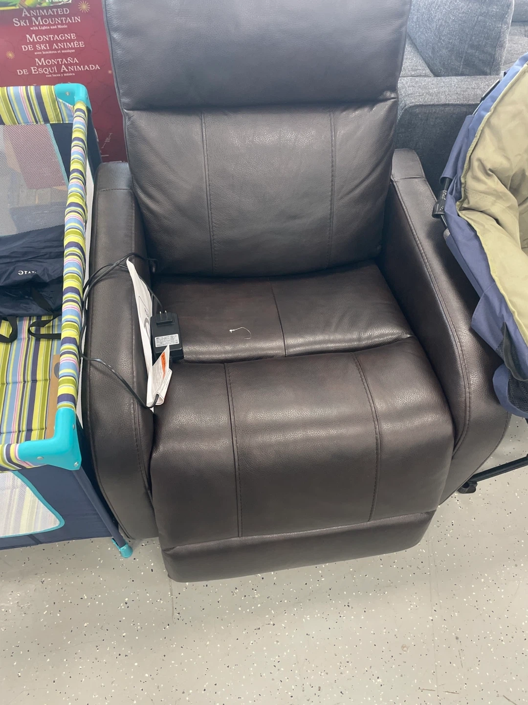 10Selling a comfortable brown leather recliner. It's in good condition and ready for a new home! It includes a power adapter.