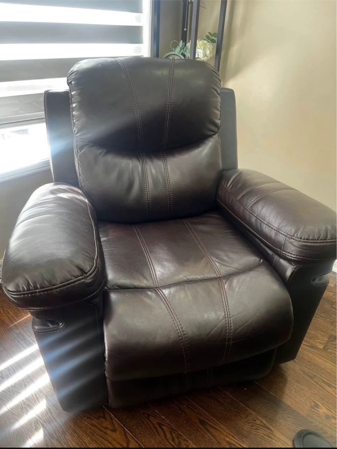 15Selling a comfy brown leather recliner! It's in good condition and perfect for relaxing after a long day. The recliner is made of leather and would be a great addition to any living room or den