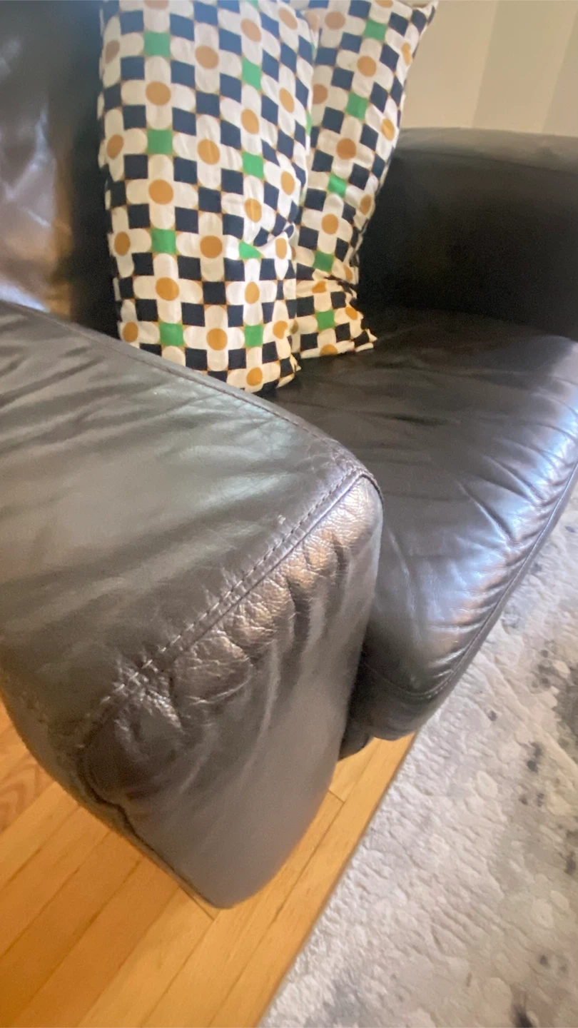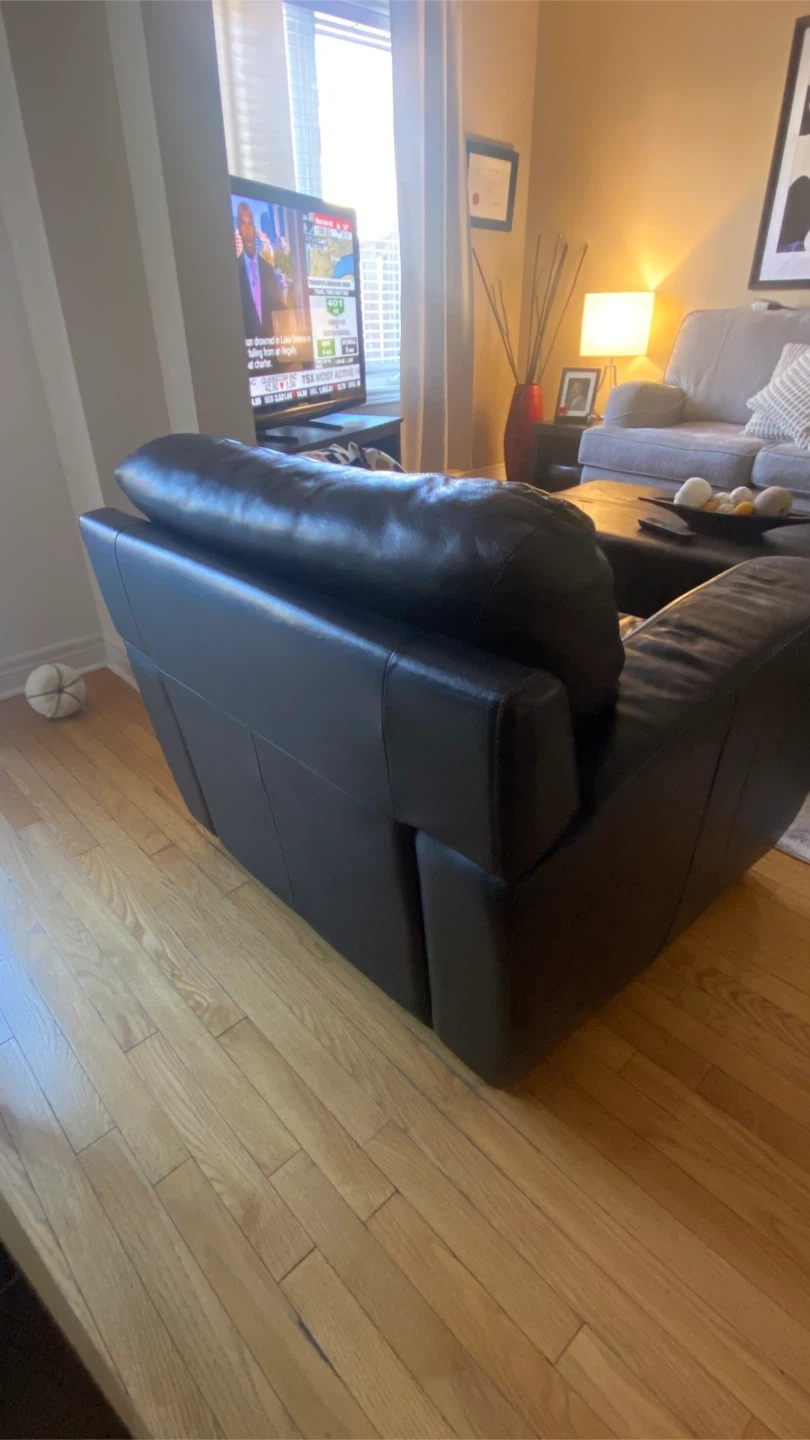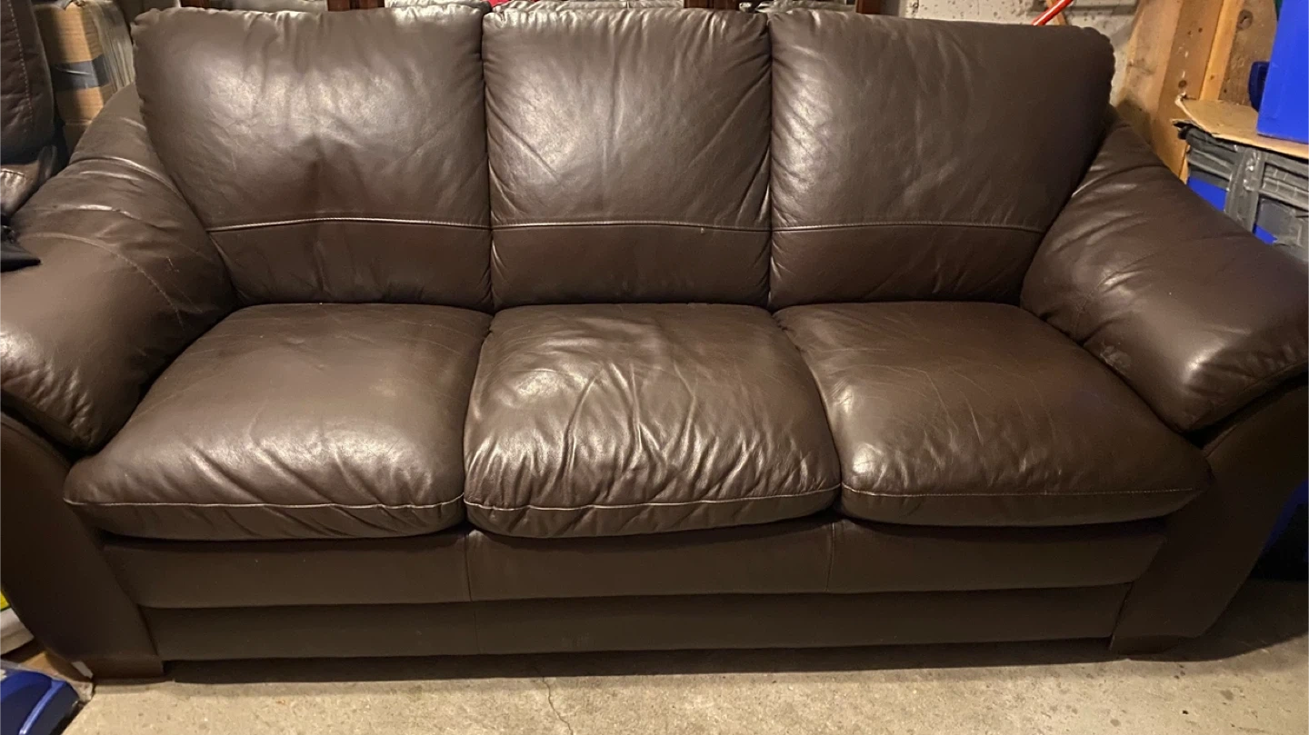48Selling a comfy brown leather sofa and matching armchair. They're in good condition and perfect for a living room or den. The leather is soft and well-maintained. Pick up asap Buy the sofa only and u pay $150 The armchair by it’s self $140