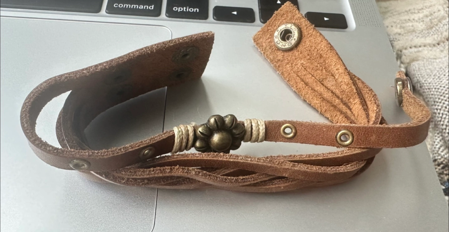 Stylish brown leather wrap bracelet with a unique braided design and a flower accent! It's in great condition and would add a nice touch to any outfit Feel free to check my other postings