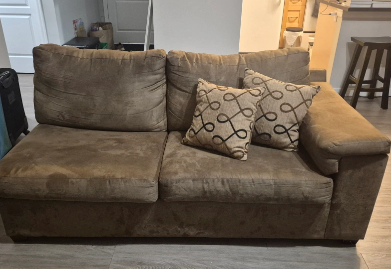 Selling a comfy brown loveseat sofa! It comes with the cushions pictured.