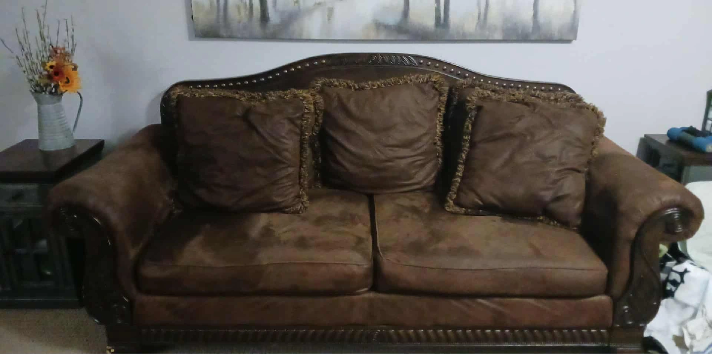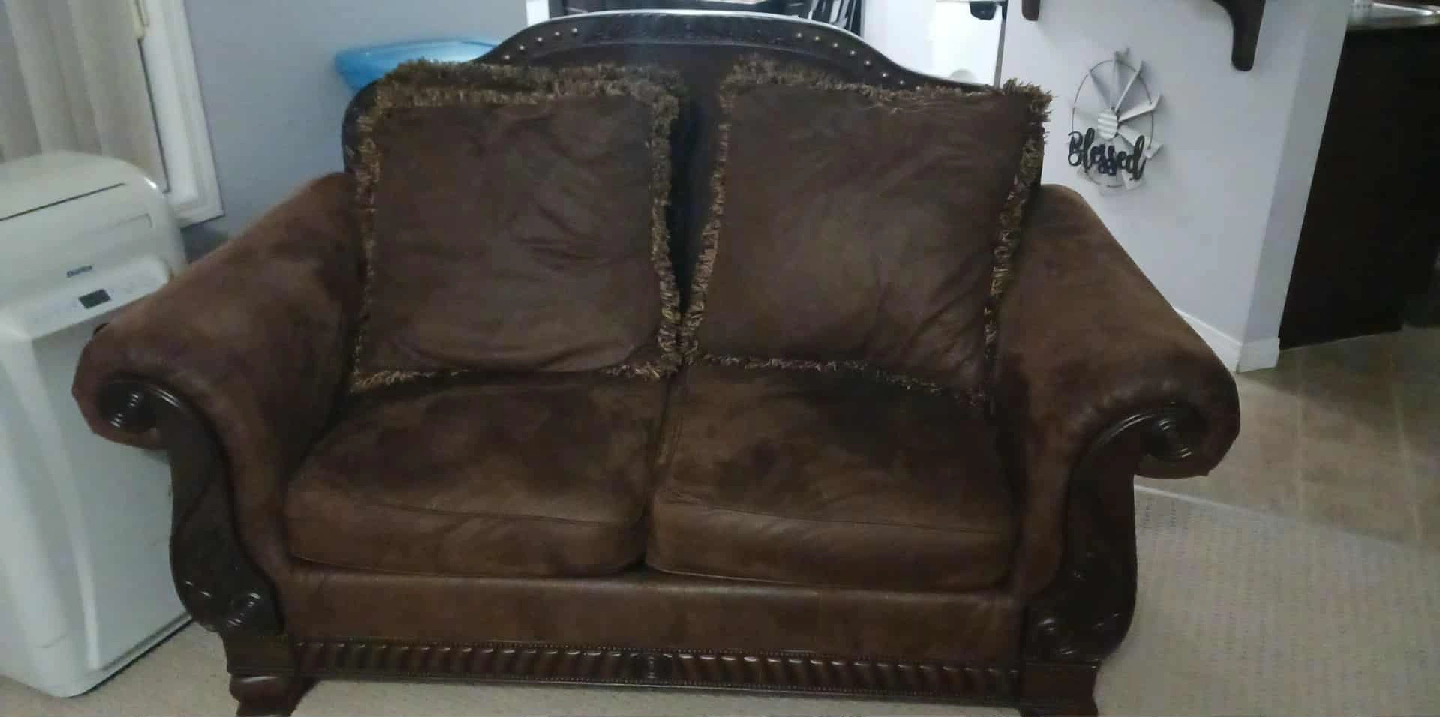 10Selling a brown loveseat sofa. It's in great condition and ready for a new home! The sofa features a classic design with decorative trim and comfortable cushions Only available for pickup.
