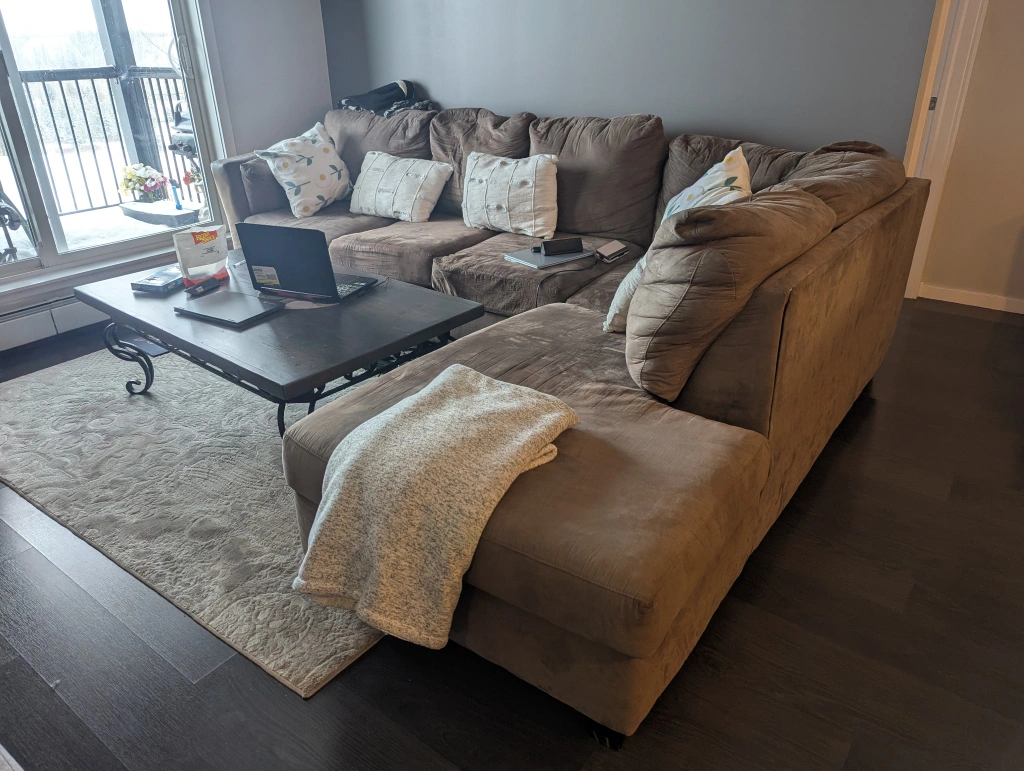 HomeBuy and sellBrown Microfiber L-Shaped Sectional SofafatiChard600 reviewsBrown Microfiber L-Shaped Sectional SofaFurniture · $340Spacious L-shaped sectional. Brown microfiber fabric. Good condition, Comfortable seating. Smoking free. Dog freeDimensions300cm 214 cm 85inch 118inc used in good shape.Where to meet1196 Hyndman Rd NW0 chats·1 favourite·35 viewsGet the Karrot app to chatOther listings by fatiBrown Microfiber L-Shaped Sectional Sofa$340Chard