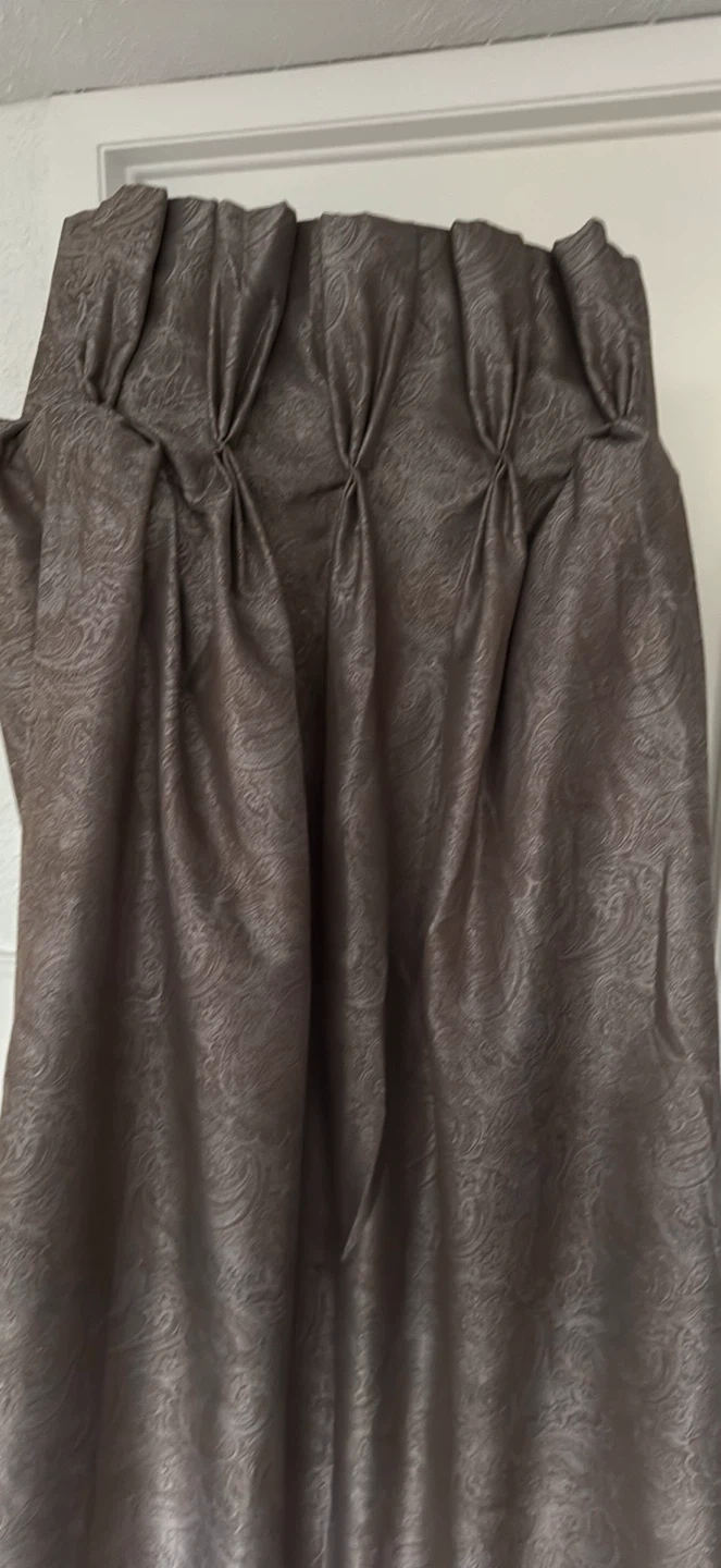 I have 5 brown curtain panels with a paisley pattern for sale. They are in great condition and would look lovely in any room. The material feels nice and has a good weight to it, perfect for blocking out light or adding some privacy to your space
