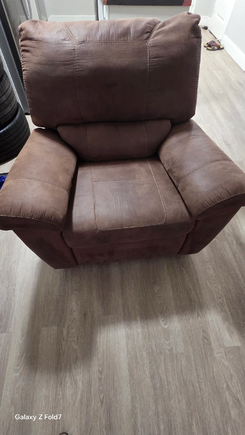 Selling a comfy brown recliner sofa and loveseat set! The sofa has a recliner on each end, and the loveseat reclines too. They're both in good condition and ready for a new home. Perfect for a living room or rec room