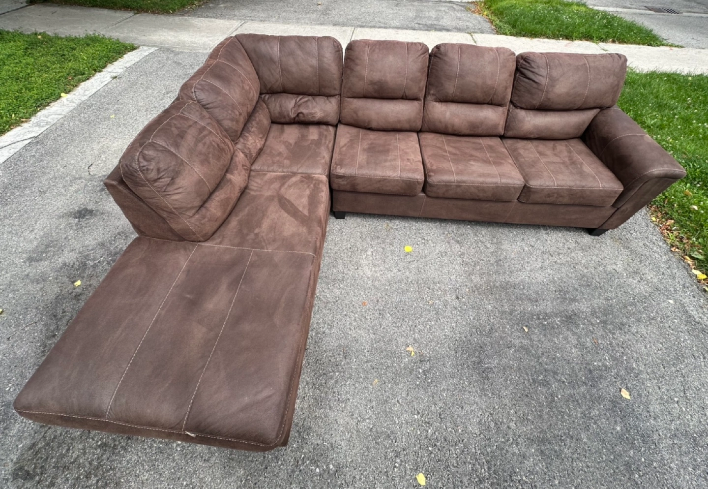 Corduroy Sectional Sofa with Pillows - Black