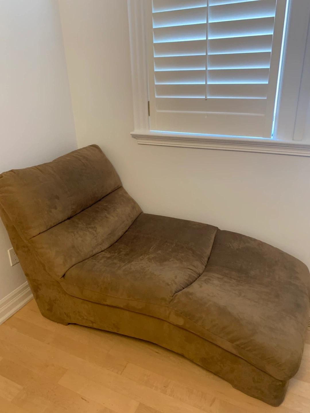 68Selling a comfy brown chaise lounge! It's in great shape and perfect for relaxing. The material feels like suede, making it extra cozy. It's a great addition to any living room or bedroom for lounging and reading a book