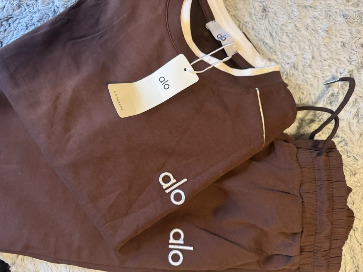 Selling an “ALO-INSPIRED” sweat set in a lovely brown colour! The set includes both the top and the pants. It's in great condition and ready for a new home. Perfect for lounging or a light workout Offers are accepted but NO TO LOW BALLERS!!