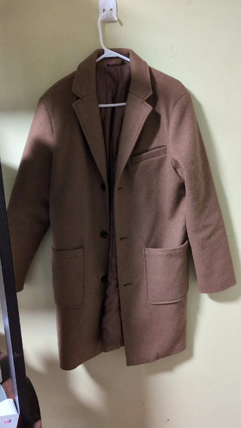 18A stylish brown wool coat, perfect for the cooler weather. It's in great condition and ready for a new home!