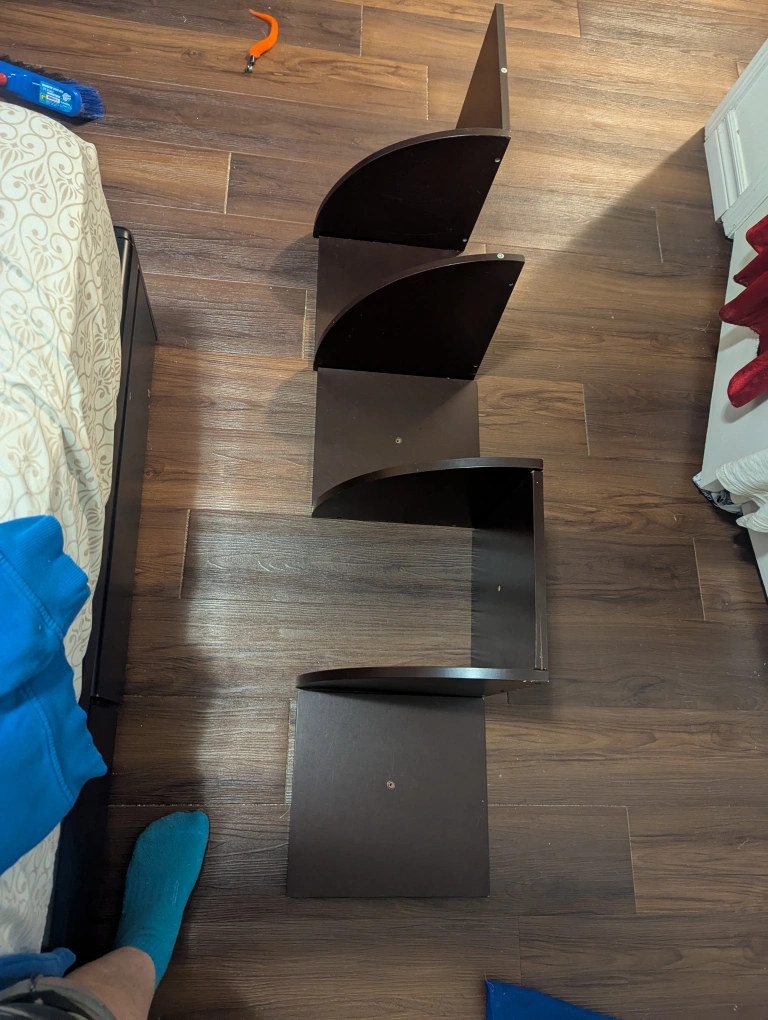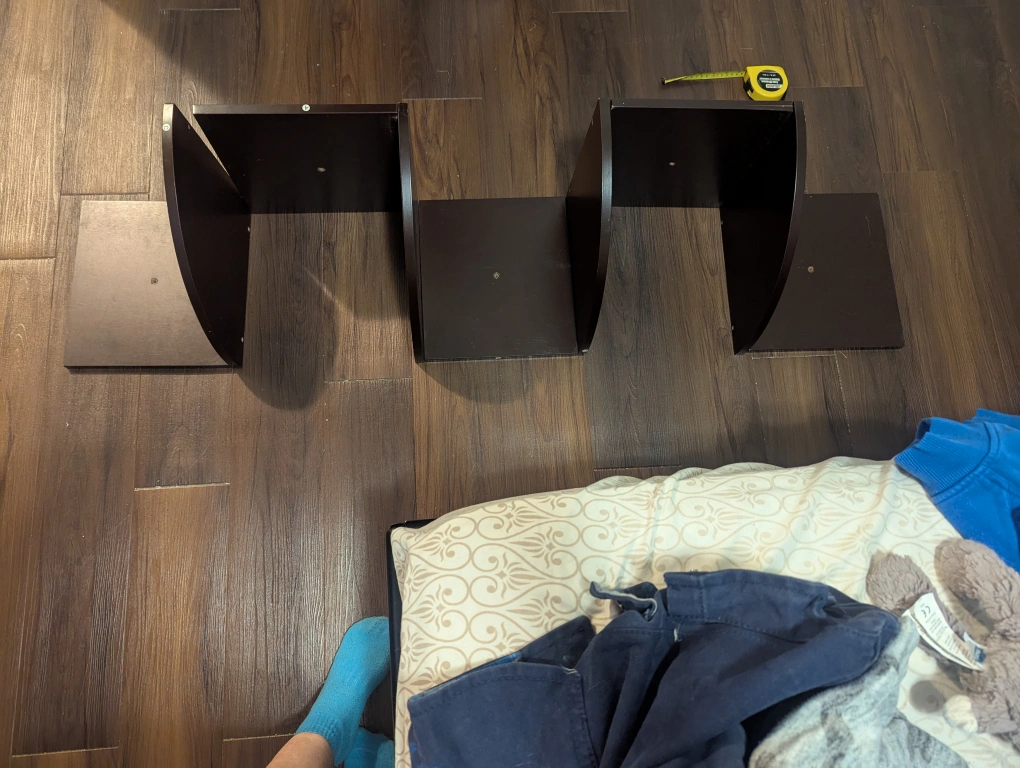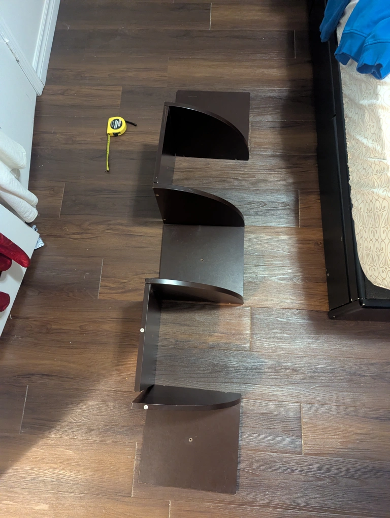 Selling a brown zig zag wall shelf! It's in great shape and ready to add some style to your space hardware not included or instructions. measurements are 57" long 12" depth 12" wide
