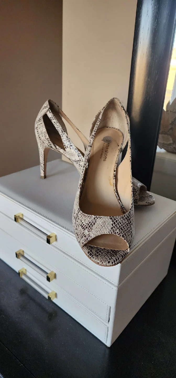 15Stylish Browns Shoes heels in a snakeskin print, size 8. Perfect for adding a touch of elegance to any outfit