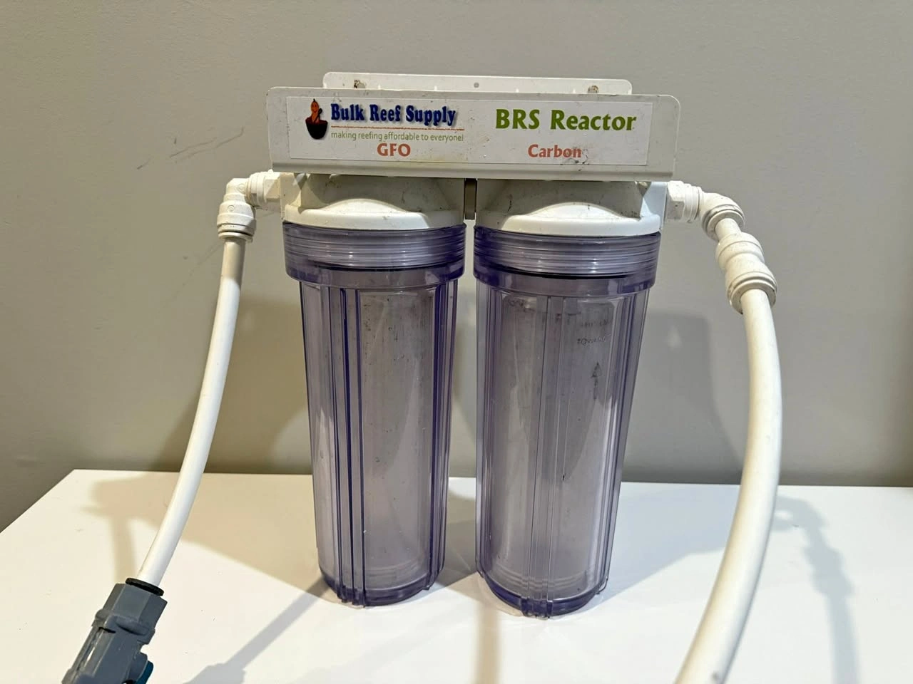 103Good condition, no issues. Easy to use, setup and maintain. Perfect for utilizing GFO and Carbon in the aquarium. No annoying thumb screws and leaky lids like other reactors. BRS recommends a Sicce Syncra 1.5 pump to operate this reactor. Sold separately or packaged with the pump. Choose a different pump depending on mounting height and amount of media used. Not for use with biopellet media.