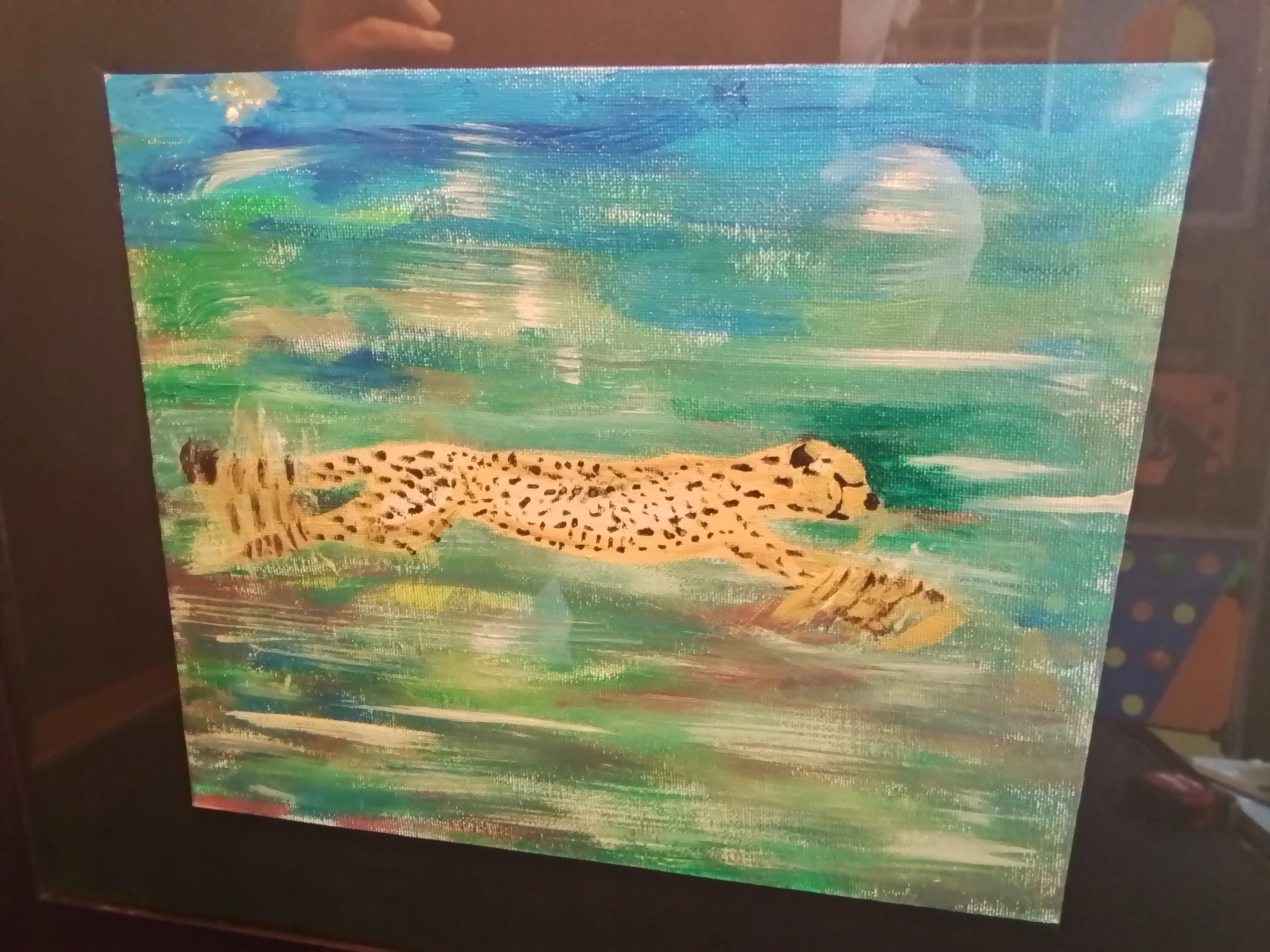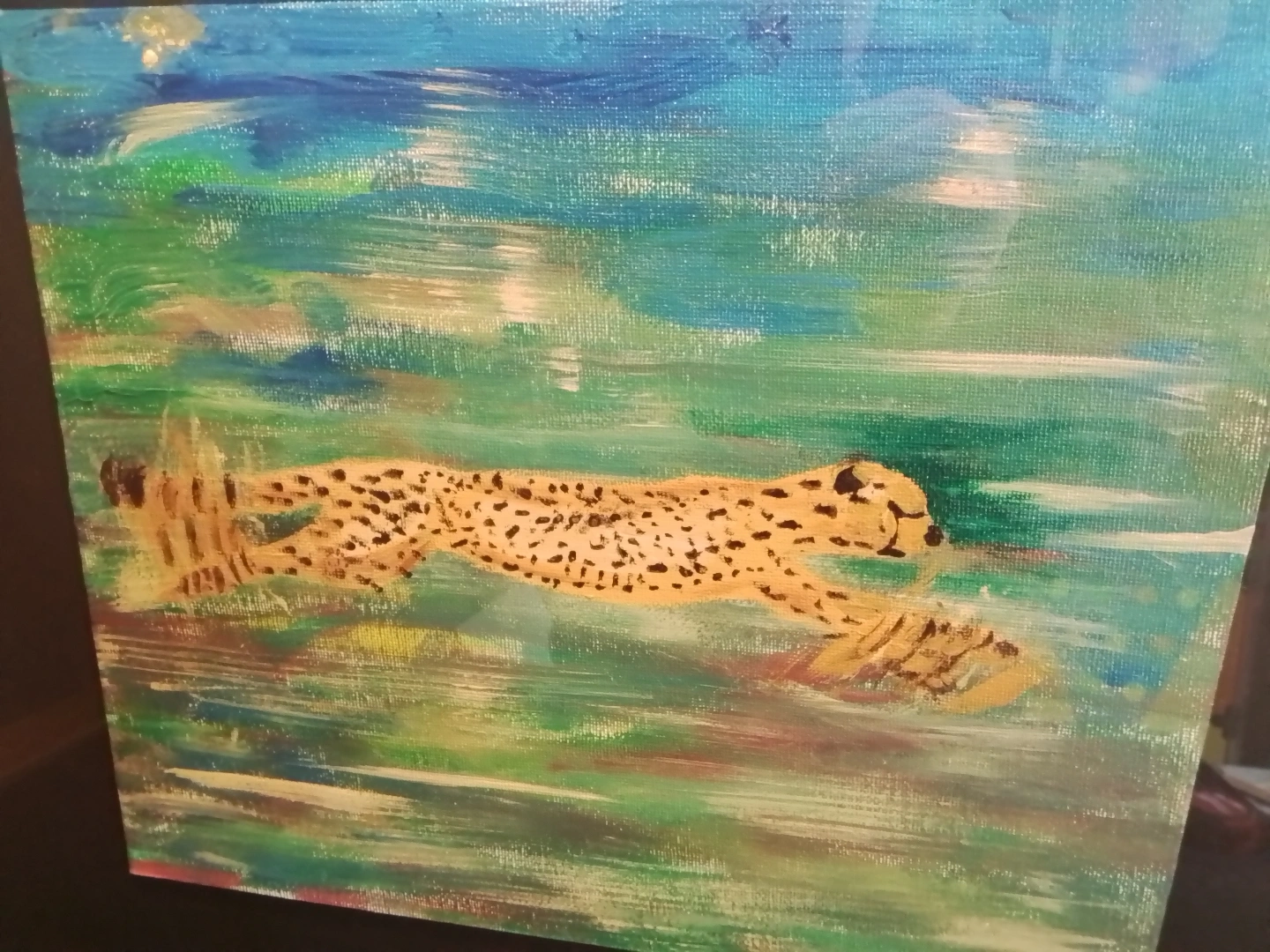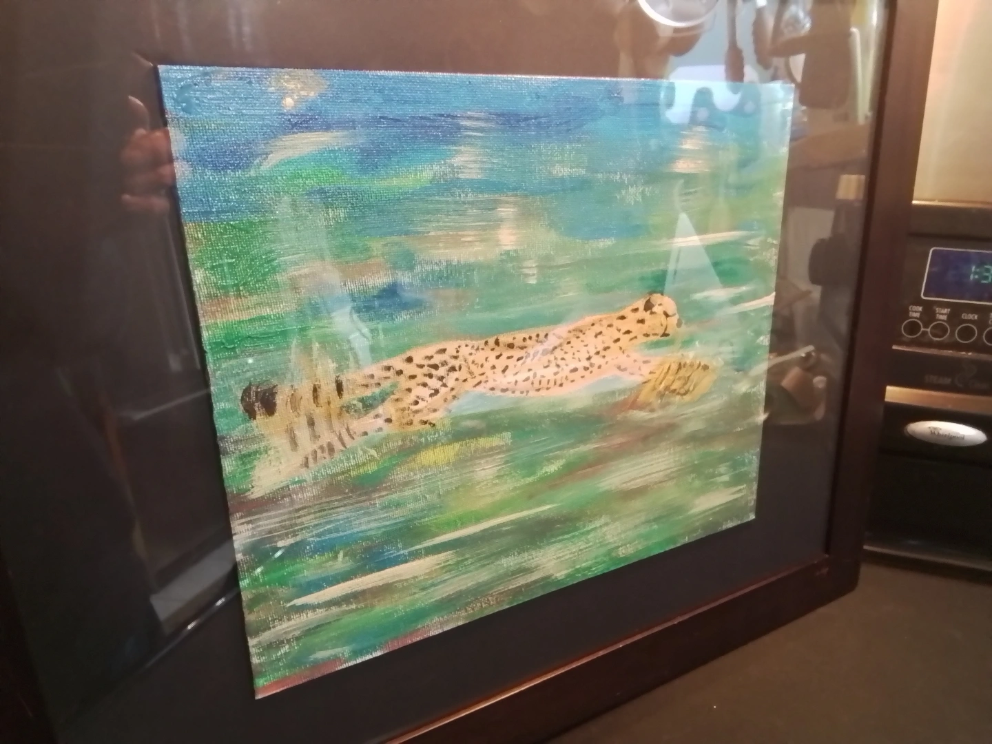 Bruckner Cheetah Abstract Painting This is a unique, framed original painting of a cheetah in water, signed by the artist Bruckner. The painting captures a dynamic scene with vibrant colors and expressive brushstrokes. It's a standout piece that would add a touch of wildlife charm to any room. Abstract Oil Painting On Canvas Running Cheetah Period Framed 21", No issues Measurements: 21" x 17 * Artist: Bruckner * Subject: Cheetah in Water * Framed: Yes * Original: Yes Looking to add a touch of the wild to your space? This painting is calling your name! Don't miss the chance to own a Bruckner original. P.S. If you see this ad, it's still available! Original framed painting. Depicts a cheetah running through water. Features vibrant colours and unique style. Signed by the artist. Pickup at Young Street and Steels Ave