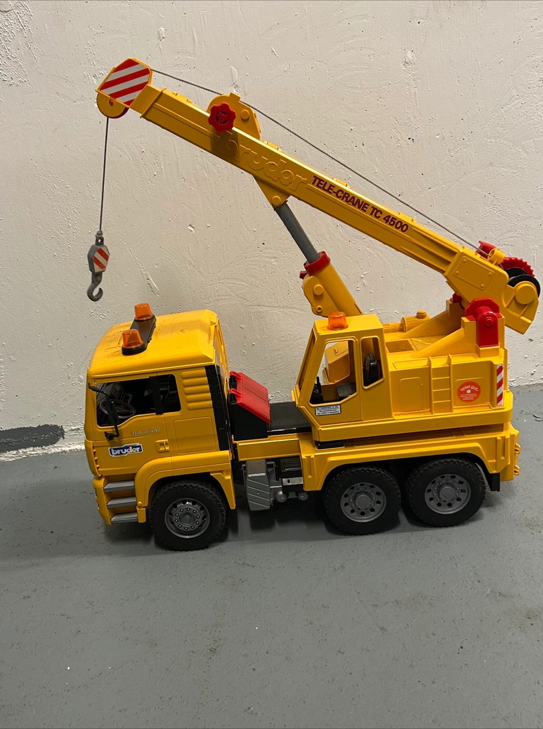 Bruder Tele-crane TC 4500. Yellow toy truck. Working crane. Great for imaginative play. $20