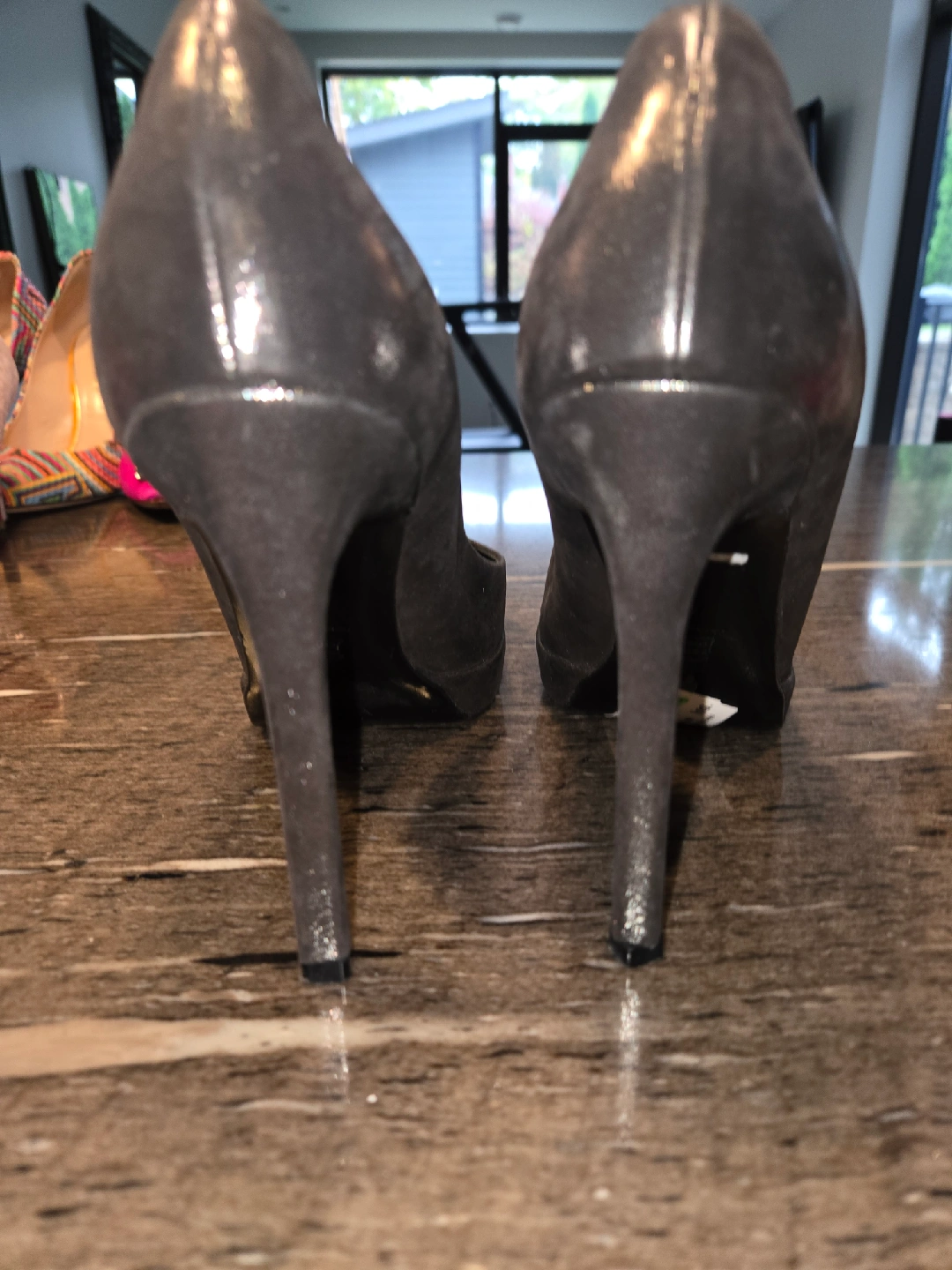 205These are a pair of Bruno Frisoni Paris heels! They are a beautiful, shimmery grey colour and would be perfect for a night out or special occasion