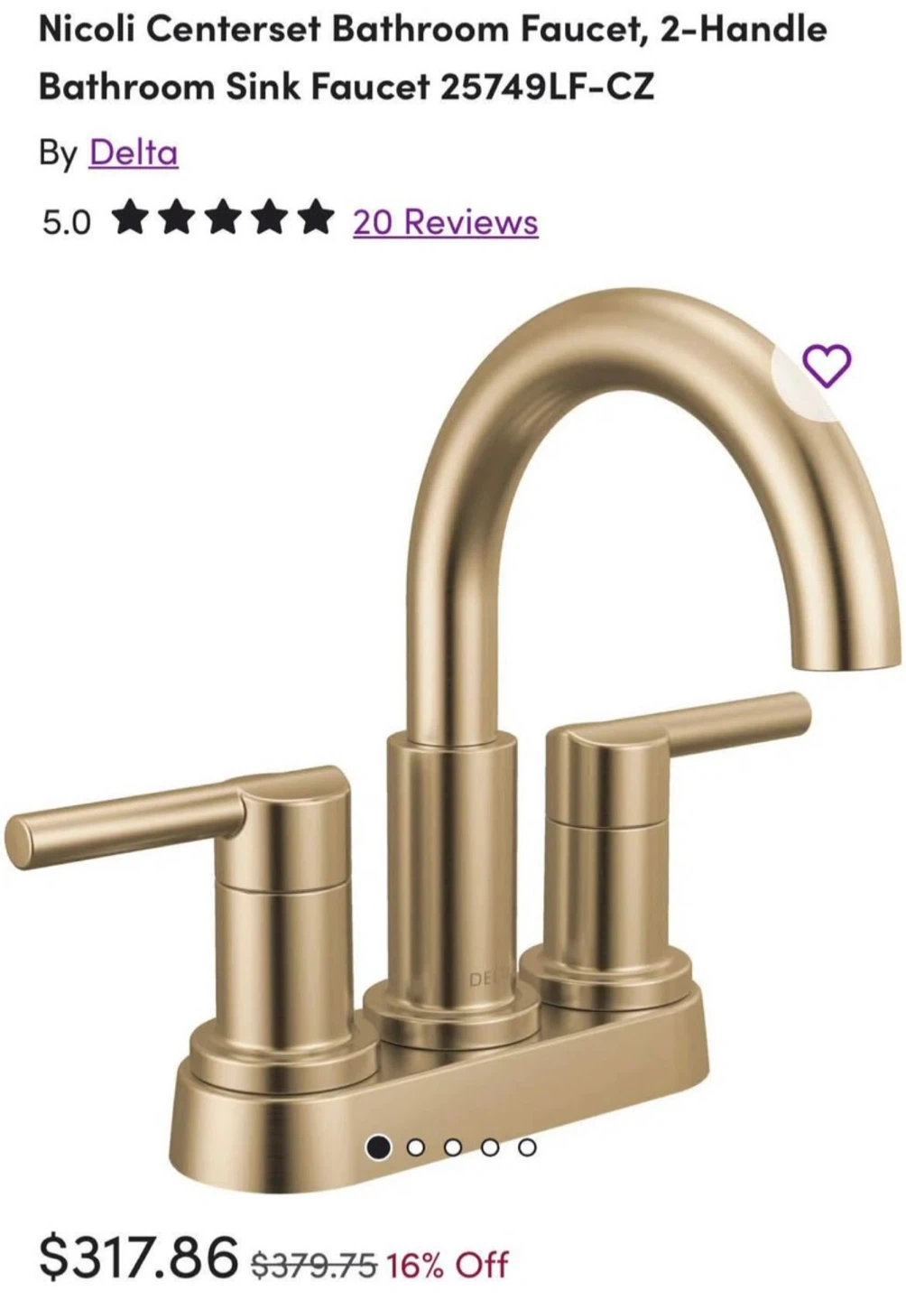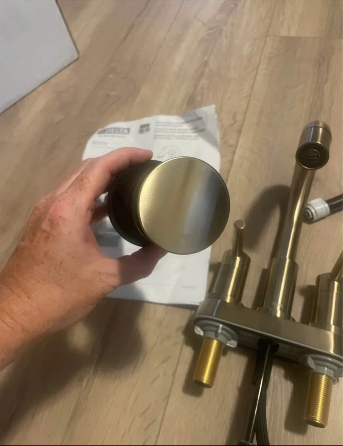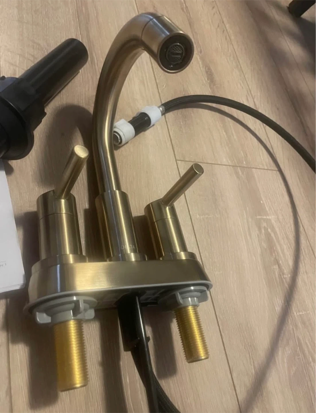 65Brushed Gold Delta Pull-down Bathroom Faucet The Nicoli collection balances minimalist design trends with an elevated, sleek look that easily adapts to change as your style evolves. Delta WaterSense labelled faucets use at least 20% less water than the industry standard — helping you save water without compromising performance. What's Included? 2 Handle(s) Included Pop-Up Drain Assembly/ Waste Features GUARANTEED QUALITY: Quality is our top priority, so all our bathroom sink faucets are tested and certified, meeting or exceeding industry codes and standards EASY DIY INSTALLATION: Purposefully designed to install in 5 simple steps, with step-by-step instruction videos and tips available on Delta Faucet’s YouTube channel. The 3 hole bathroom faucet fits 2 or 3-hole 4 in. centerset installations RELIABLE VALVE: Valve cartridge is tested to last at least 500,000 uses to ensure high performance with less drips and a smooth bathroom faucet handle operation. CORROSION-RESISTANT FINISH: Our finishes are intentionally engineered for durability and tested for corrosion resistance to at least 2 times industry standards TESTED AND CERTIFIED: All Delta® bathroom faucet finishes are third-party certified and vigorously tested under extreme conditions to ensure years of dependable use without cracking, peeling, chipping, blistering or changing colour over time EASY-TO-CLEAN DRAIN: Push pop-up drain unscrews from above the deck for quick removal and easy cleaning of hair and other bathroom sink debris