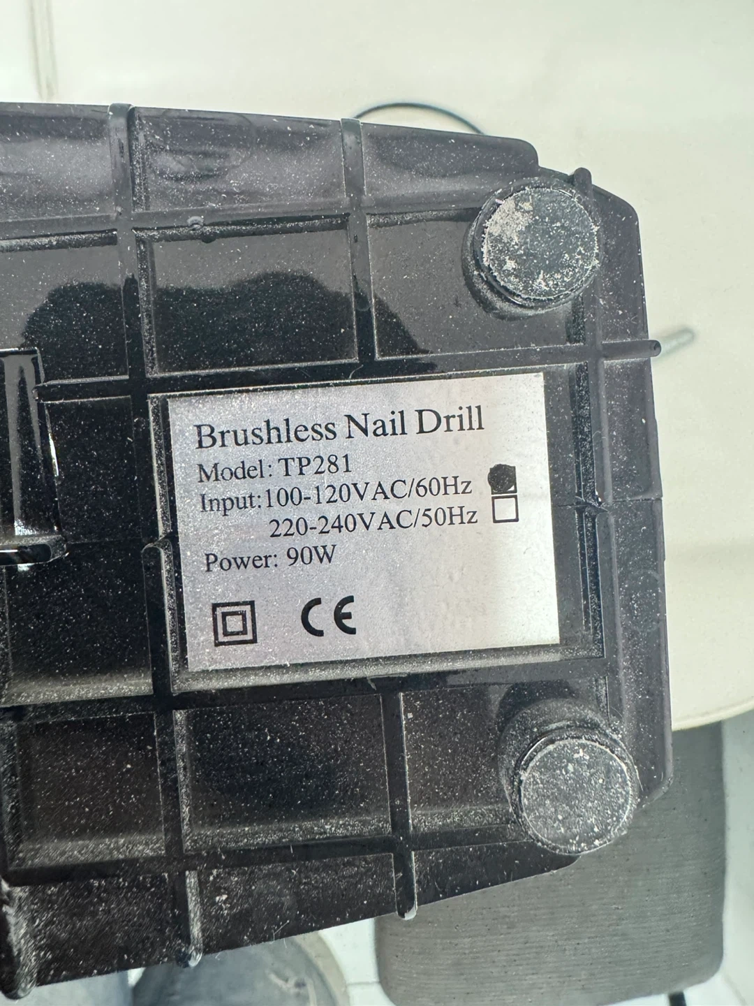 63Selling a brushless nail drill, model TP281. It has an input of 100-120VAC/60Hz and 220-240VAC/50Hz, with a power of 90W. It's in good working condition! Have 2, each is $25 or both for $40