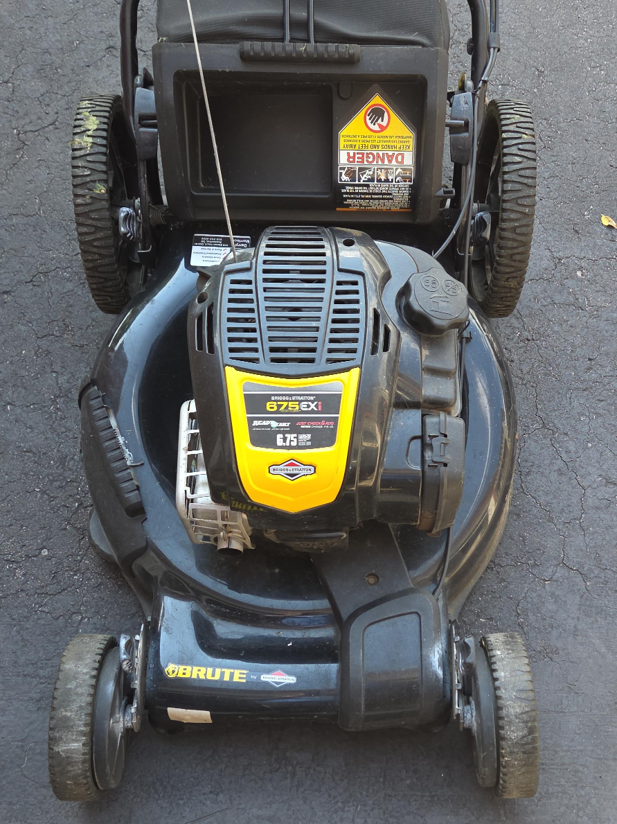 Selling a Brute lawnmower with a 6.75ex engine, with forward transmission It's in good working condition and ready to tackle your fall lawn care! will need a set of front wheels, well maintained.