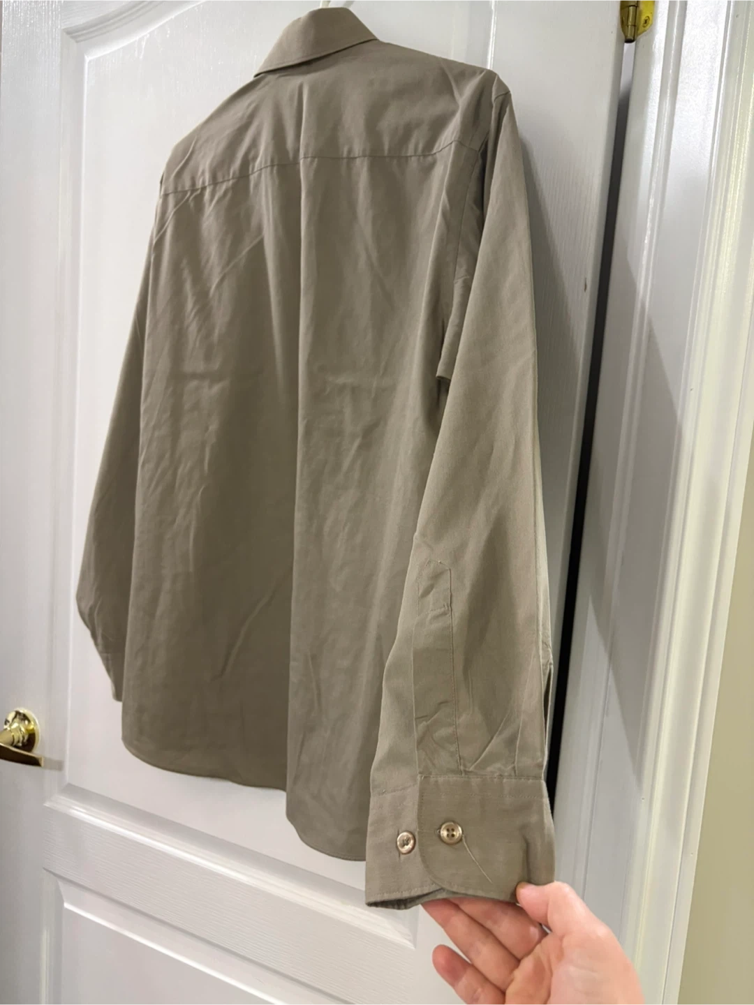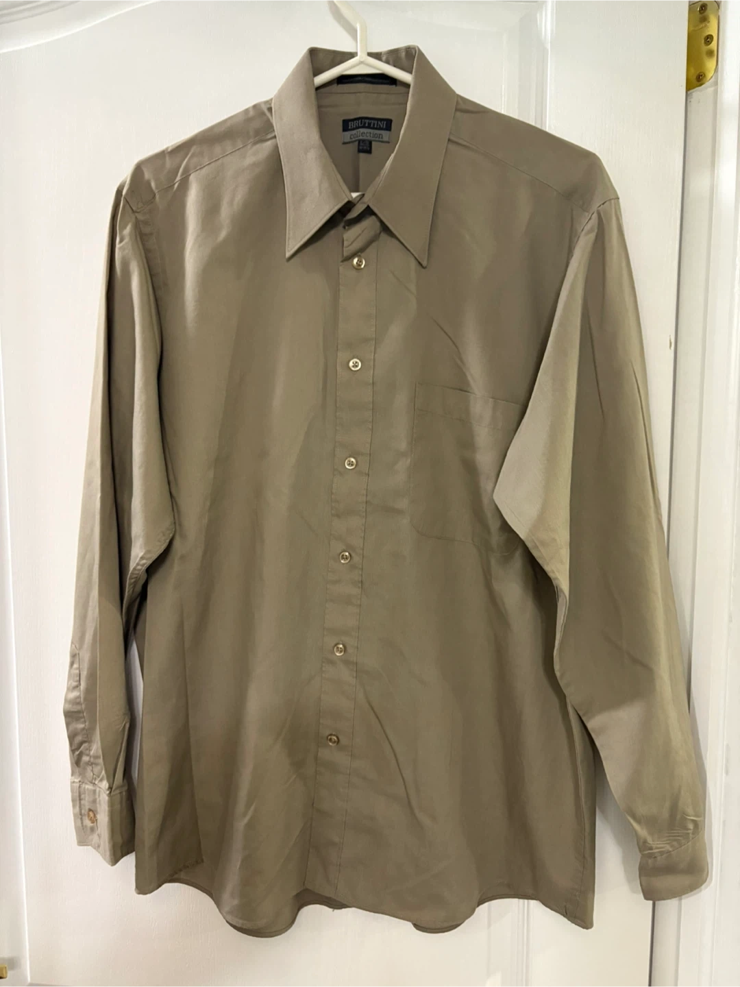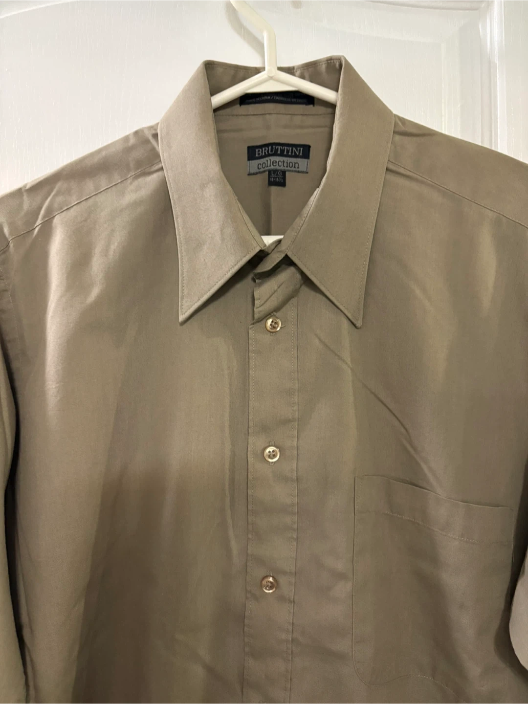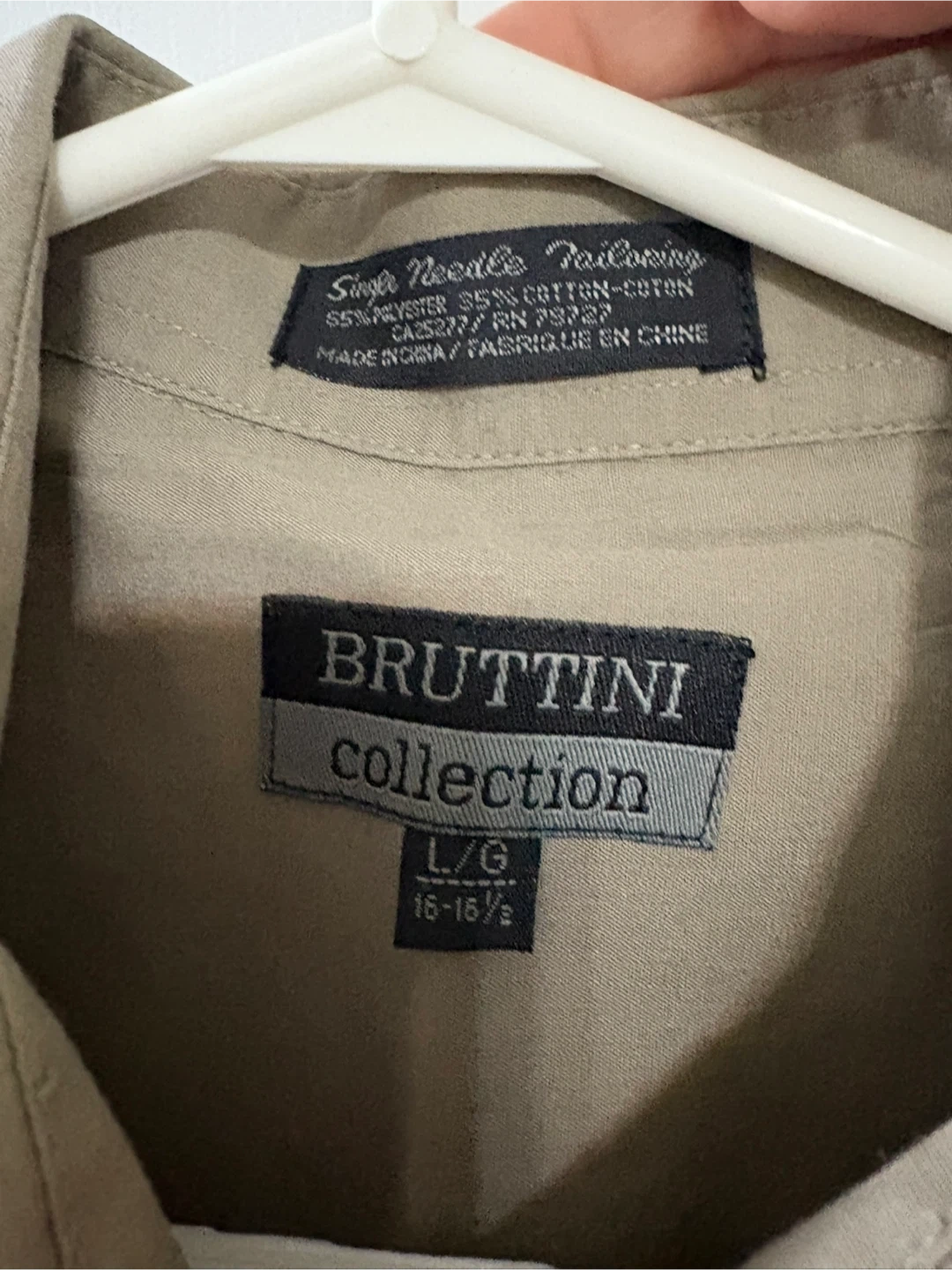 Bruttini Collection dress shirt in size large. It's a long-sleeved shirt made of 55% polyester and 35% cotton gray. It's in great condition and ready for a new home! Pickup in Brampton📍 Please checkout my other listings ℹ thanks 😊