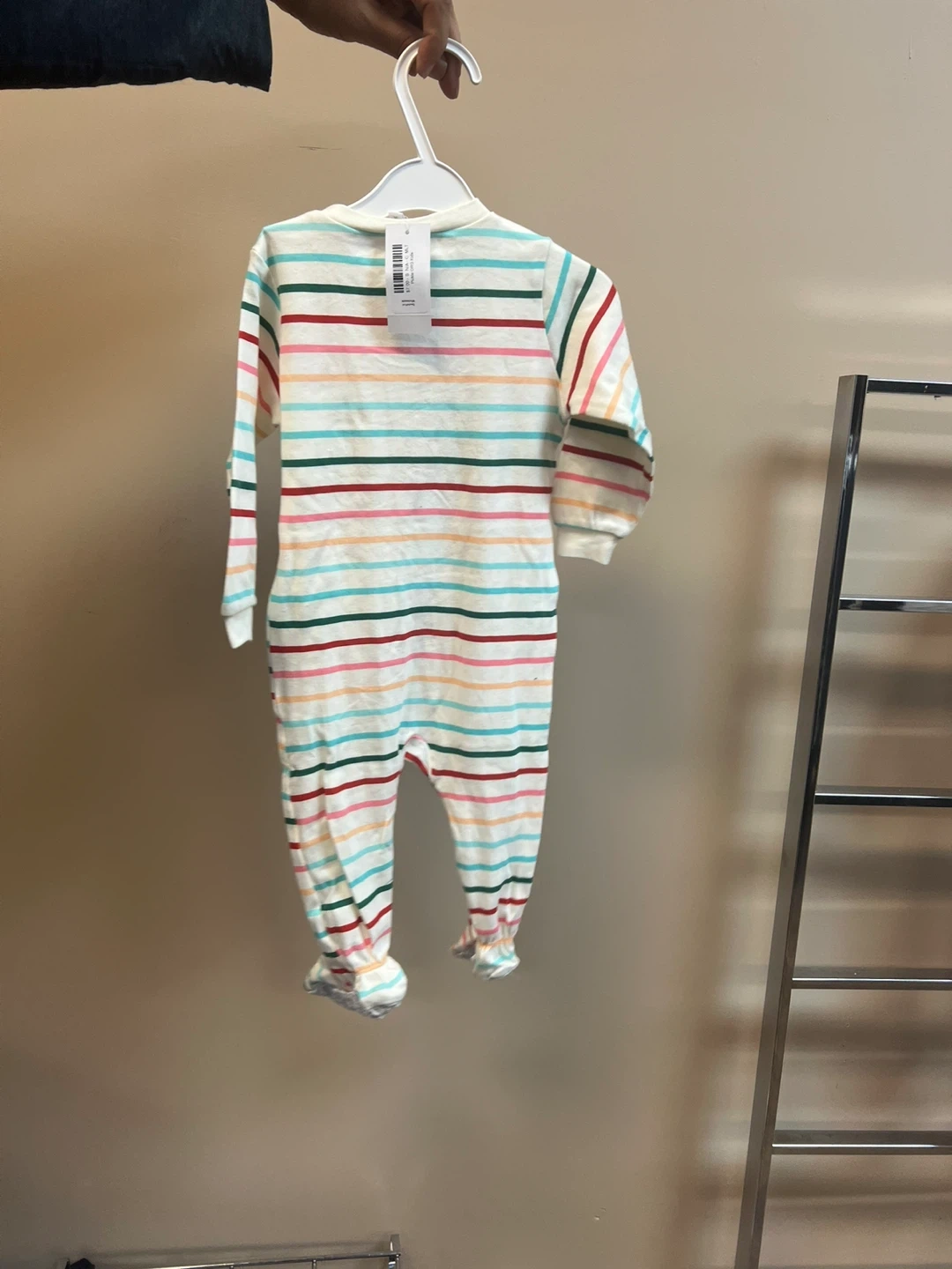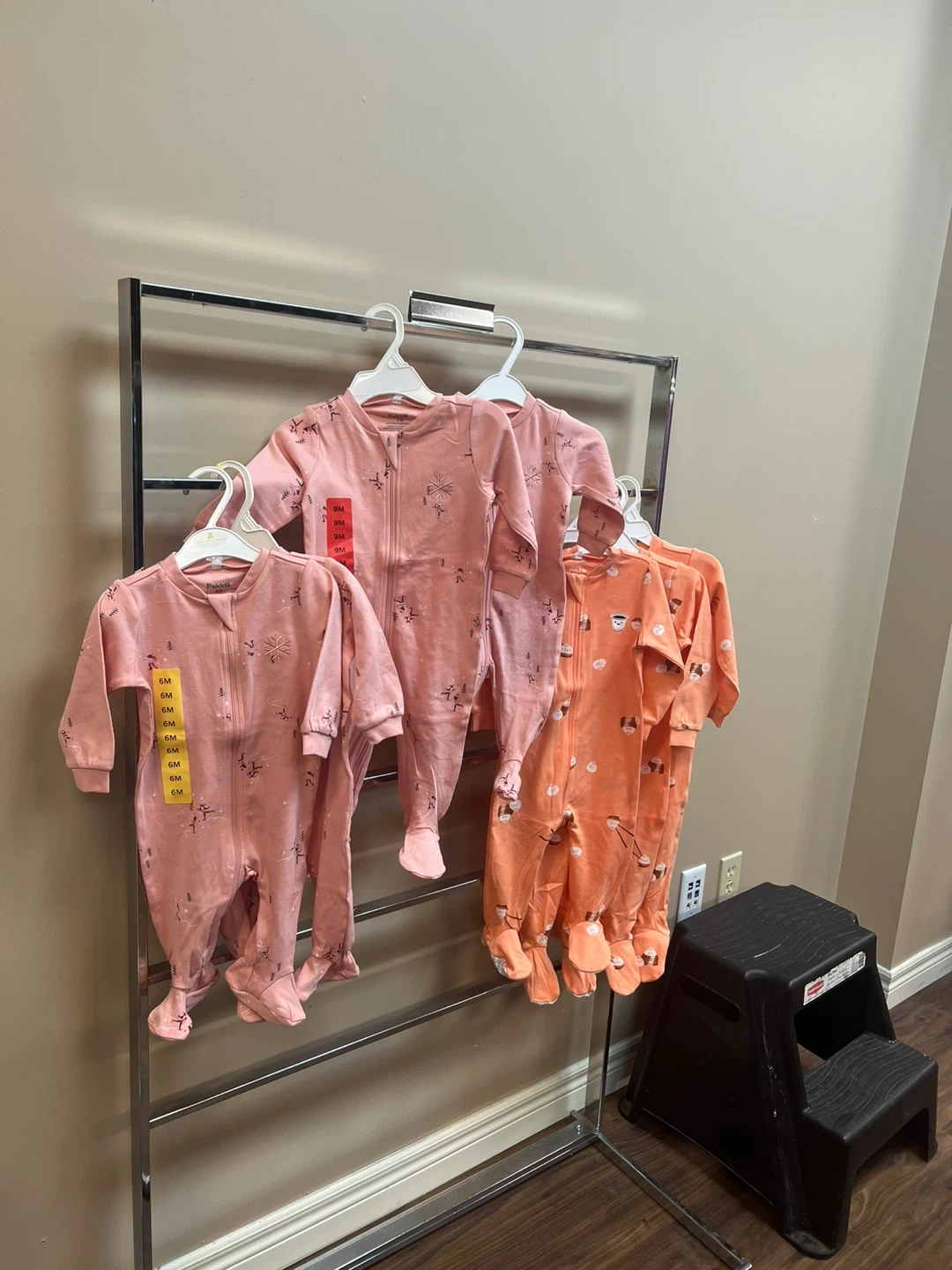 Organically grown cotton adorable baby sleepers from Pekkle. Comes with two pink patterned, two orange sushi print, and one striped sleeper. Perfect for keeping your little one cozy!