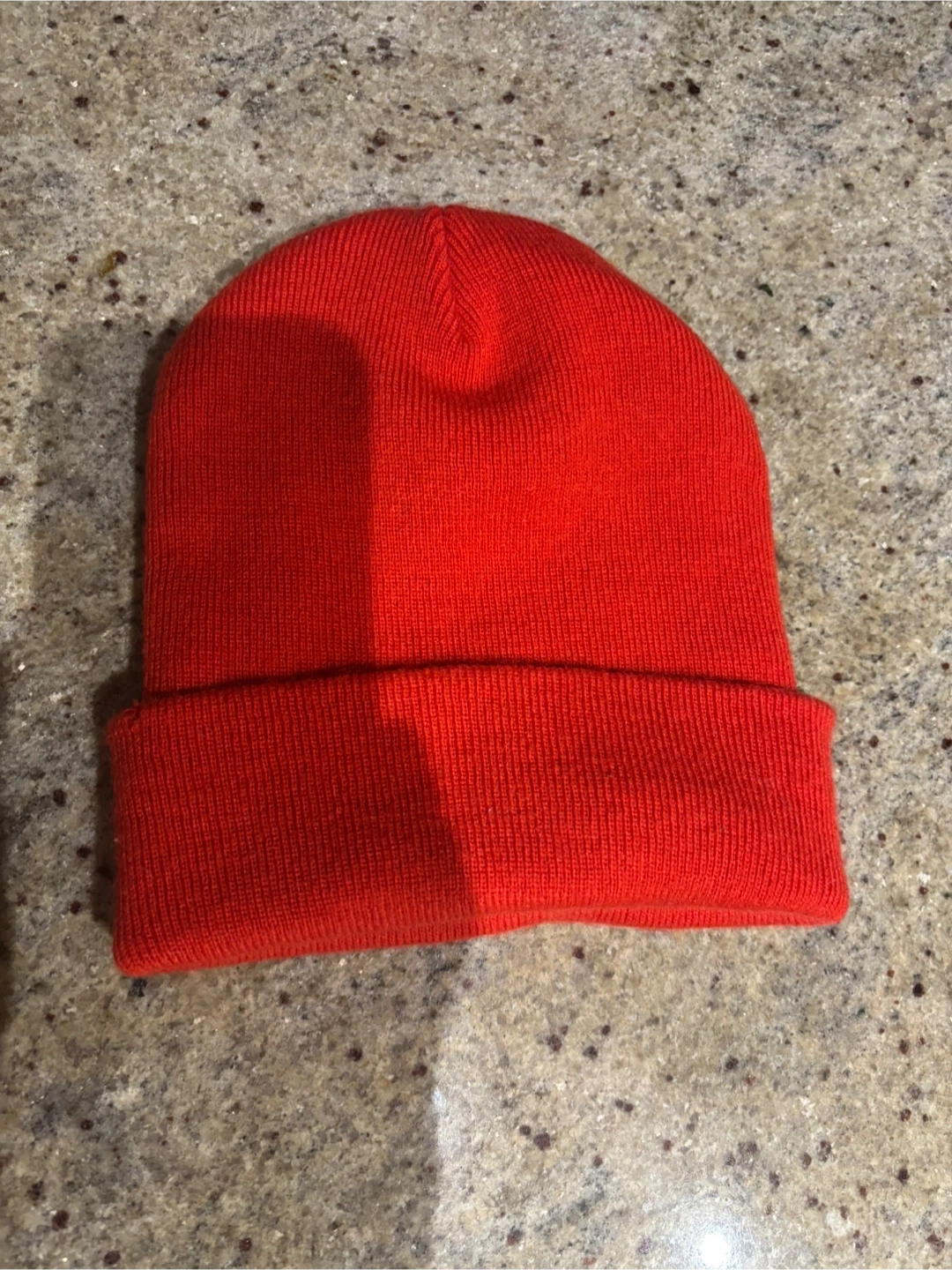 This is a red beanie from Beechfield Original Headwear. It's made of a knit material. It's suitable for keeping your head warm.
