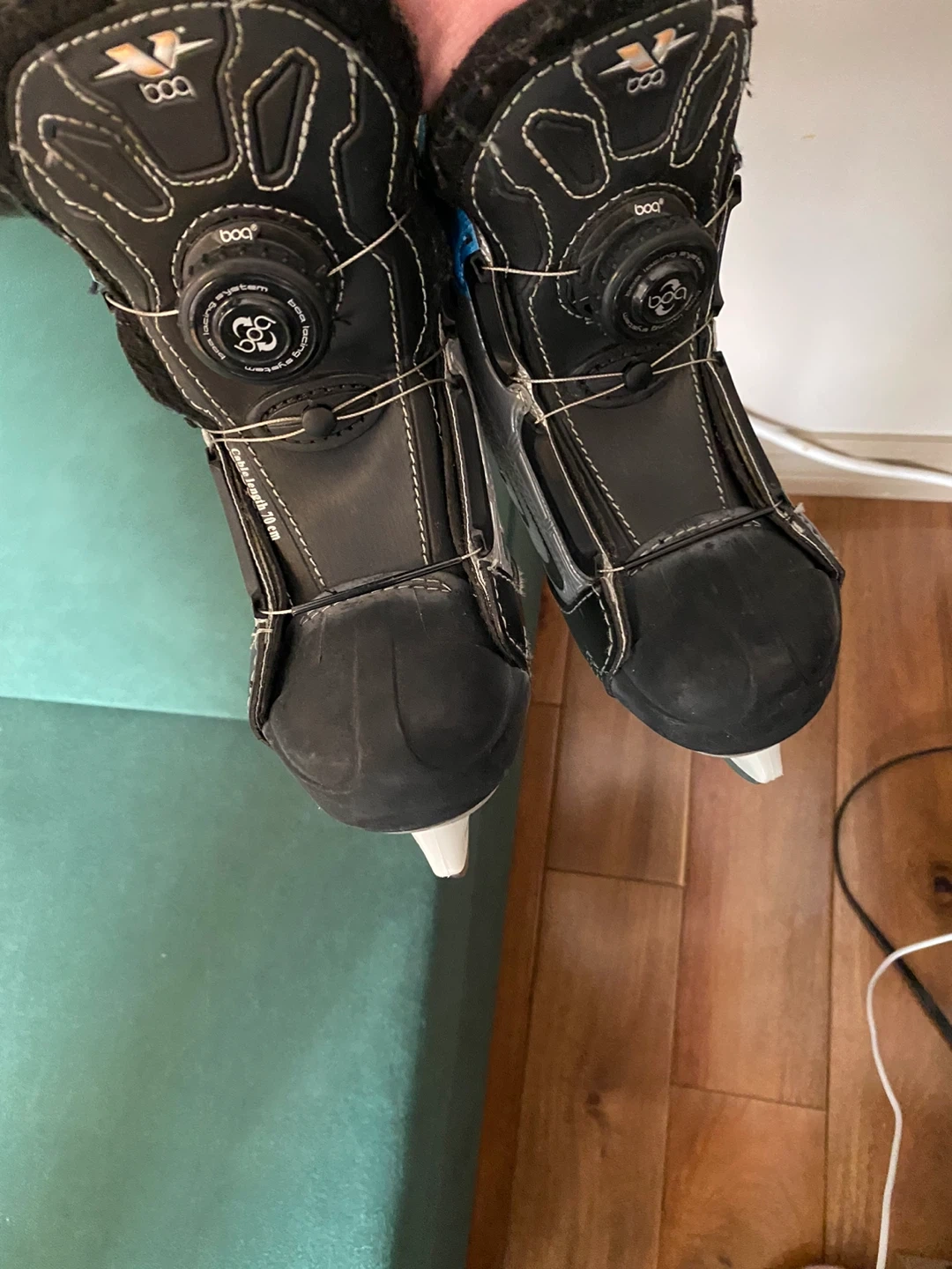 Excellent condition. Recently sharpened CCM BOA kids skates in kids size 11. The BOA lacing system is great for young kids and parents alike, no need to tie any laces, just turn the wheel and they tighten automatically.