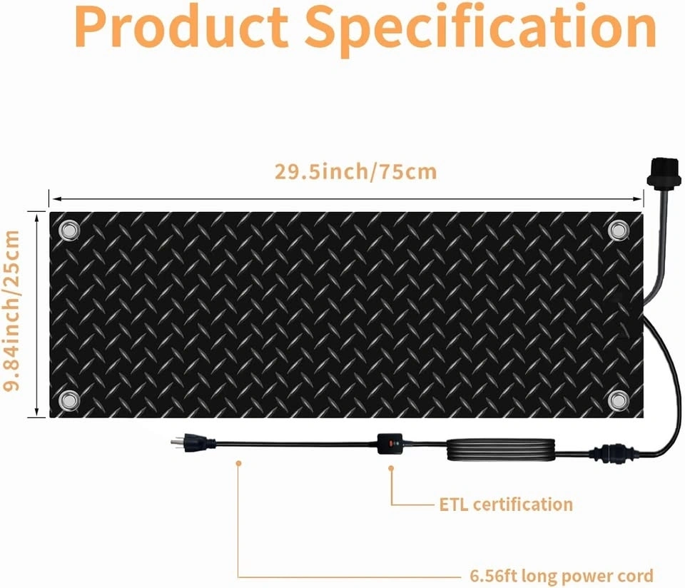 New! Anti-Slip Heated Walkway Mat with Power Cord (9.8" x 29.5")