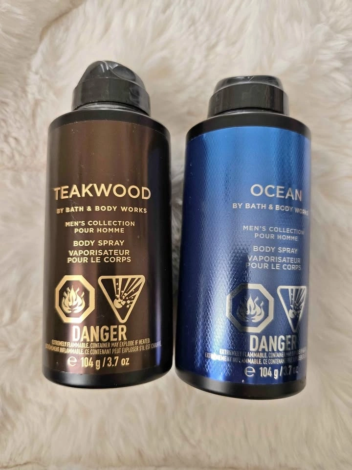 Bath & Body Works Men’s Collection body spray bundle including Teakwood and Ocean. Teakwood is warm, woodsy, and masculine. Ocean is fresh, clean, and aquatic. Great everyday sprays for gym, work, or casual wear. Popular men’s scents. Full bottles. Clean, versatile fragrance profiles. Sold as a bundle.
