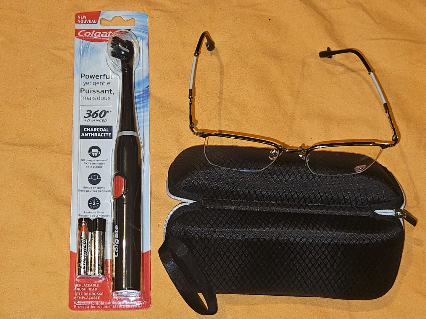 Selling a Colgate 360 Advanced Charcoal Anthracite toothbrush. It's powerful, yet gentle. Also including a Prescription pair of glasses with a strong flax plastic, impact resistant. Can be used for all types of Prescription. Brand new.