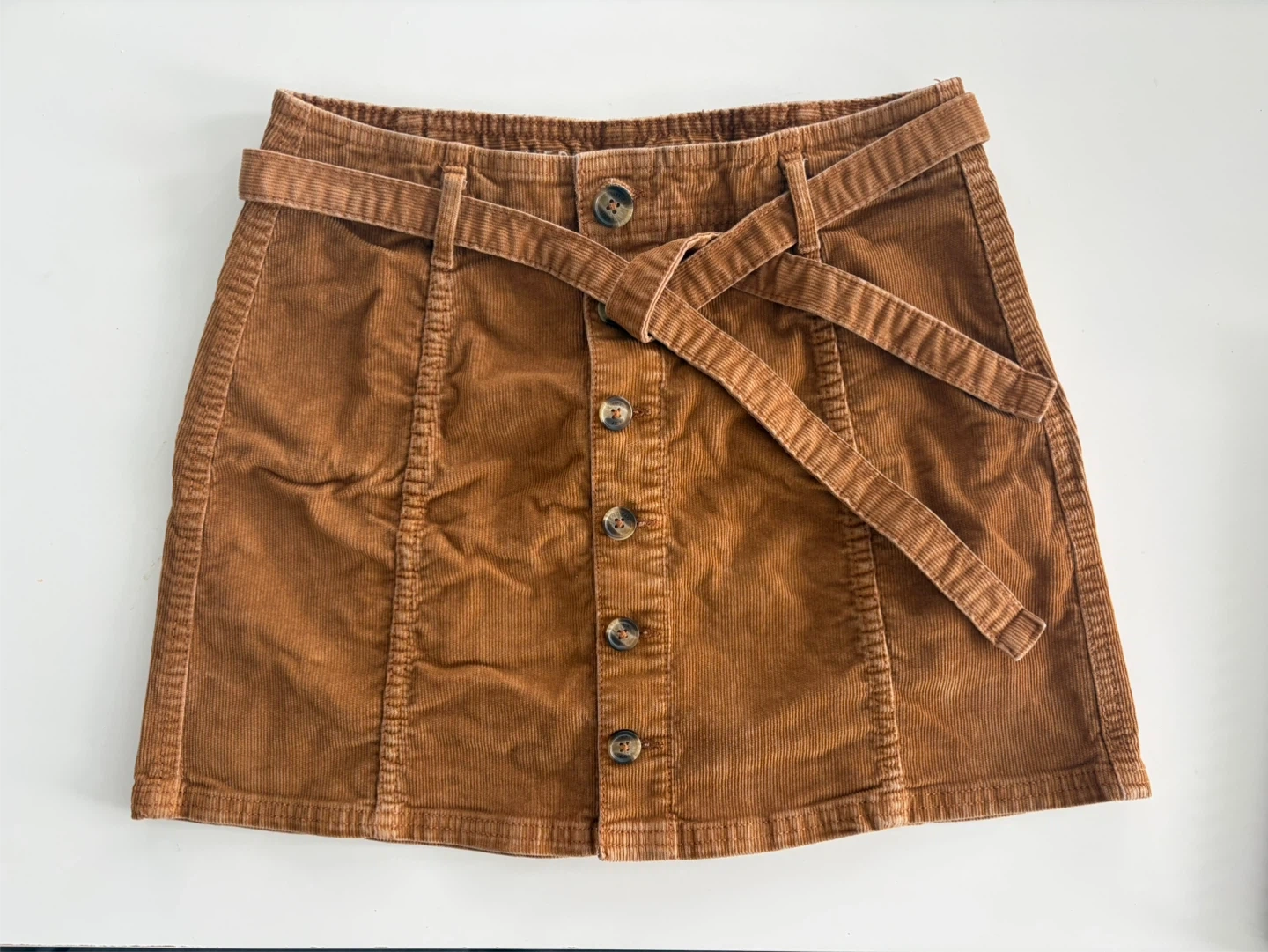 American Eagle Outfitters corduroy mini skirt with a tie belt. Made of corduroy material.