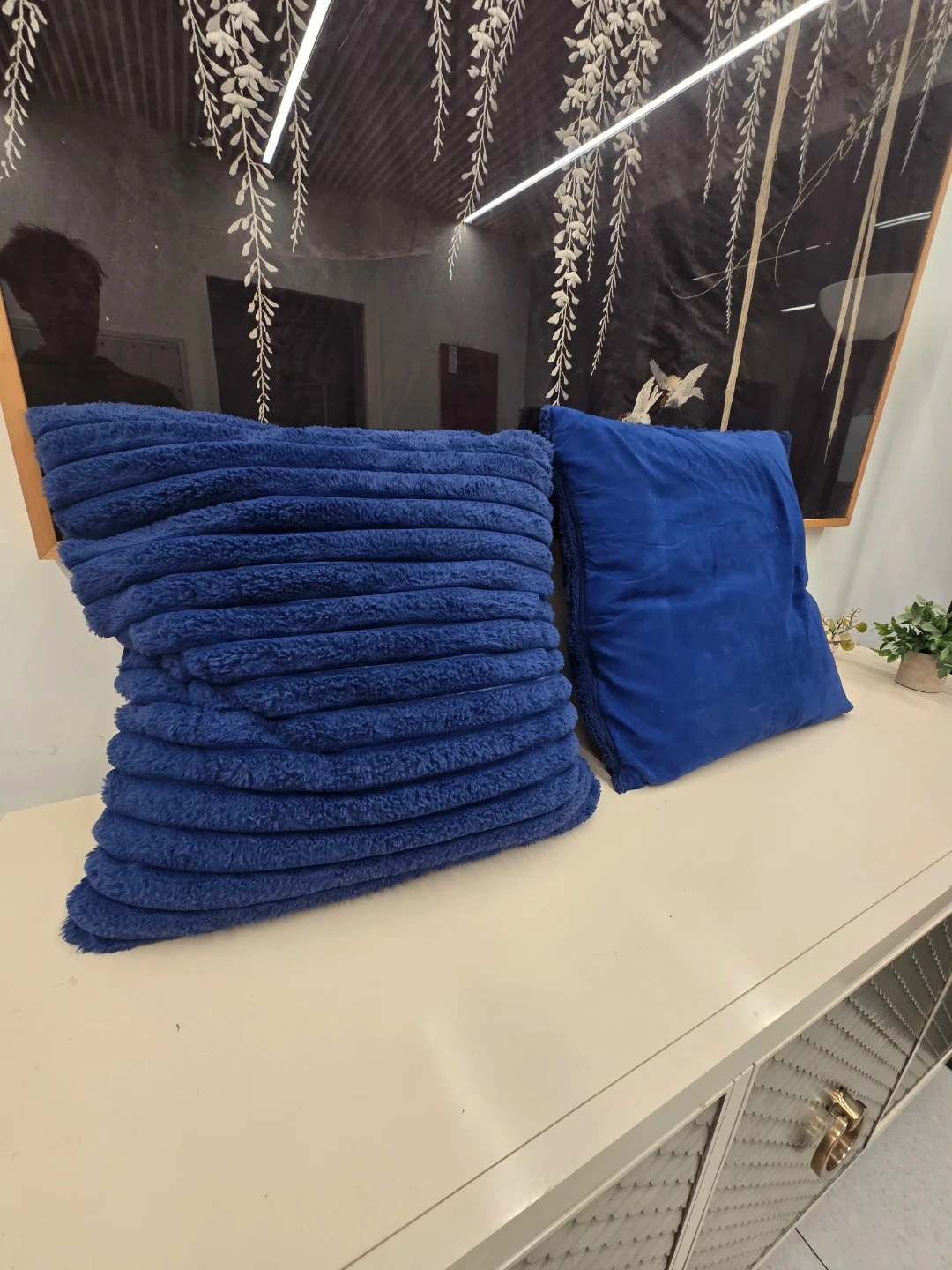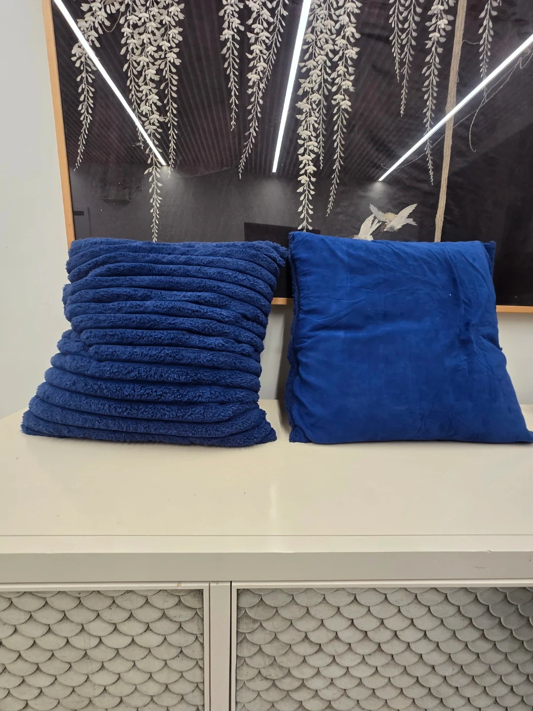 Pair Of Blue Velvet Throw Pillows *Price For Both*