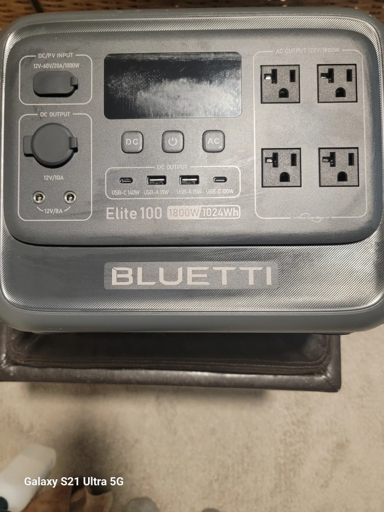This BLUETTI Elite 100 portable power station offers 1800W of output and a 1024Wh capacity. It features multiple AC outlets, DC outputs, and USB-C ports. It's useful for powering devices during camping trips or power outages.