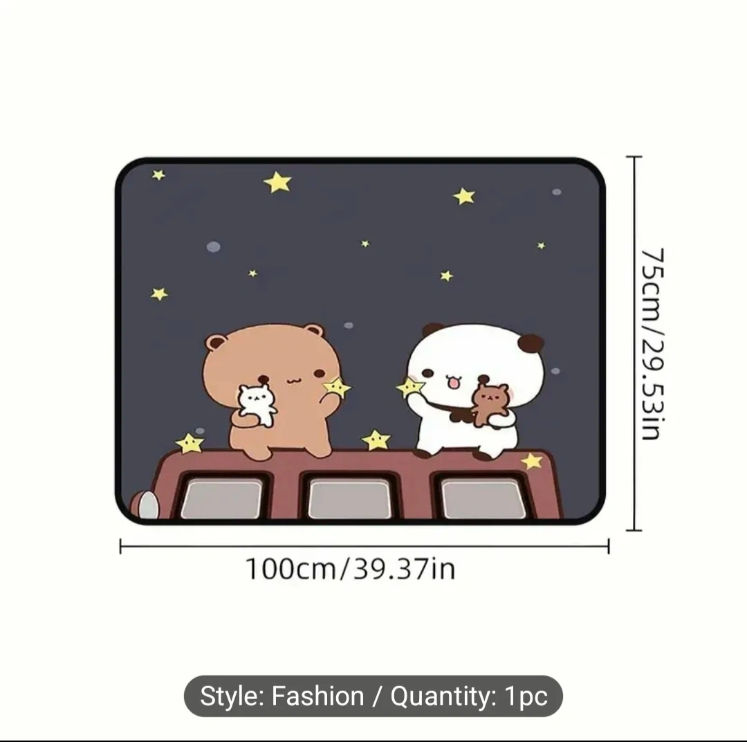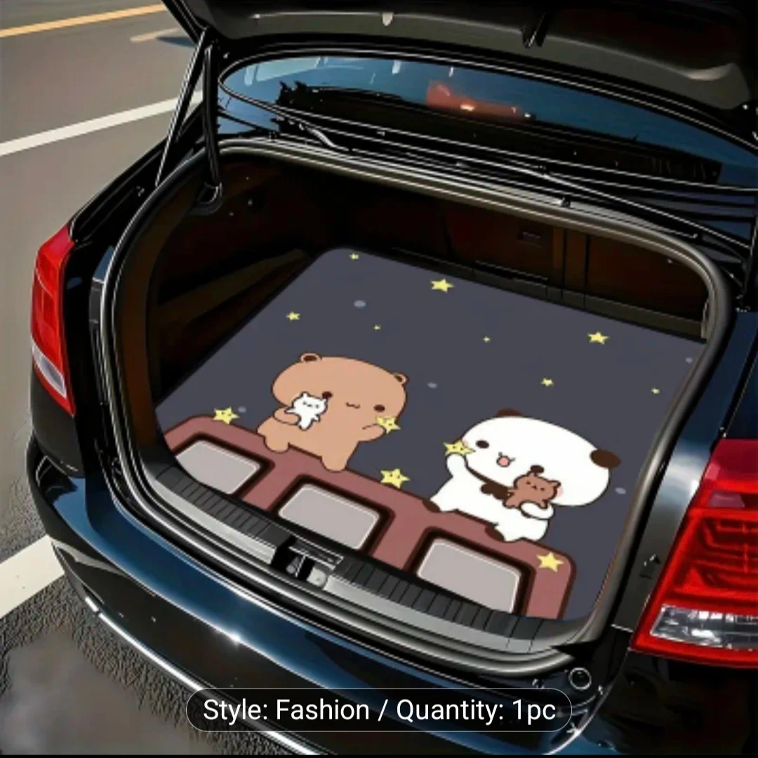 A cute car trunk mat featuring a charming bear and star design. It's easy to clean and has a non-slip backing. Dimensions are 100cm x 75cm. This mat's adorable design adds a fun touch to your vehicle's cargo space!