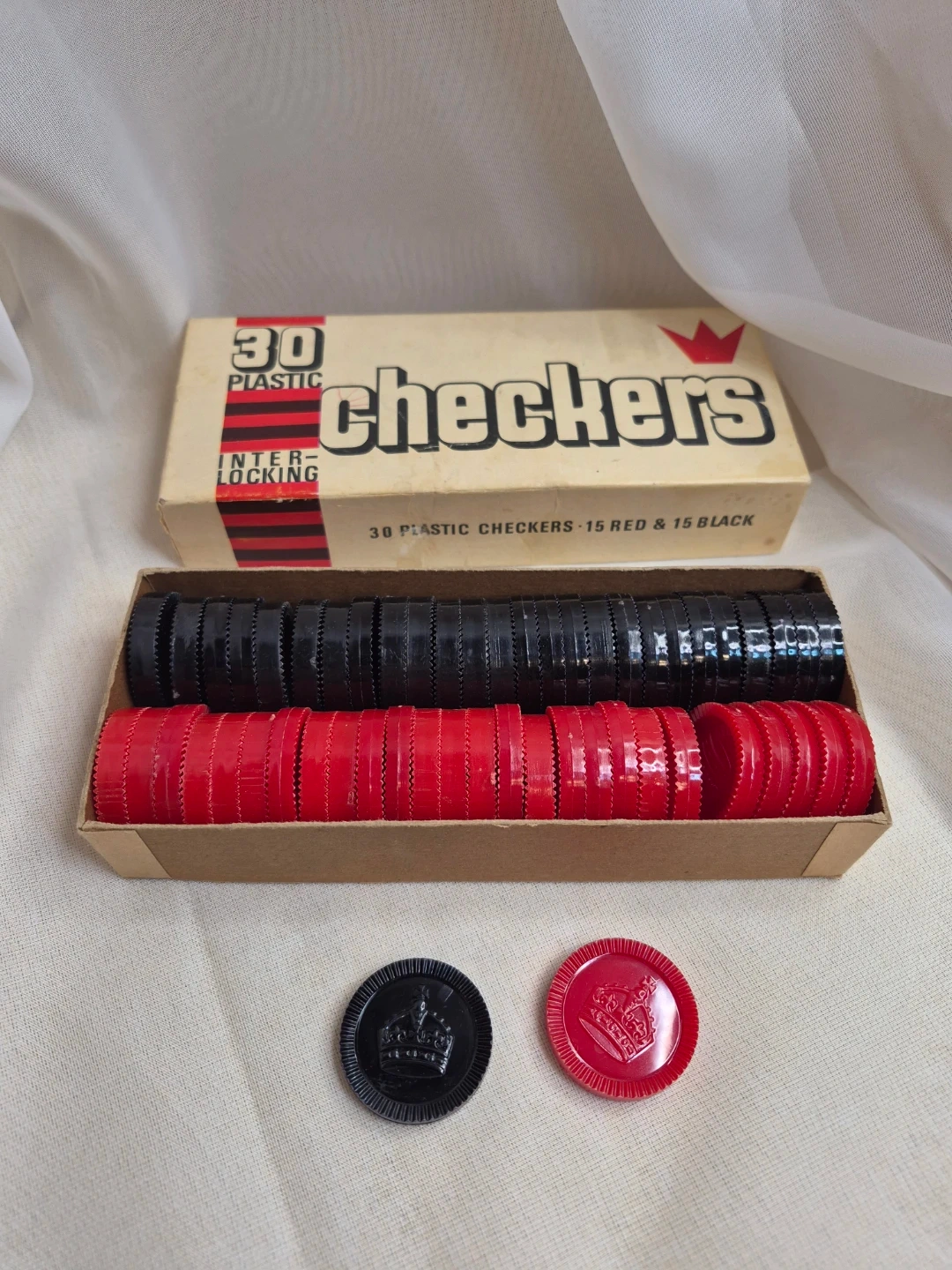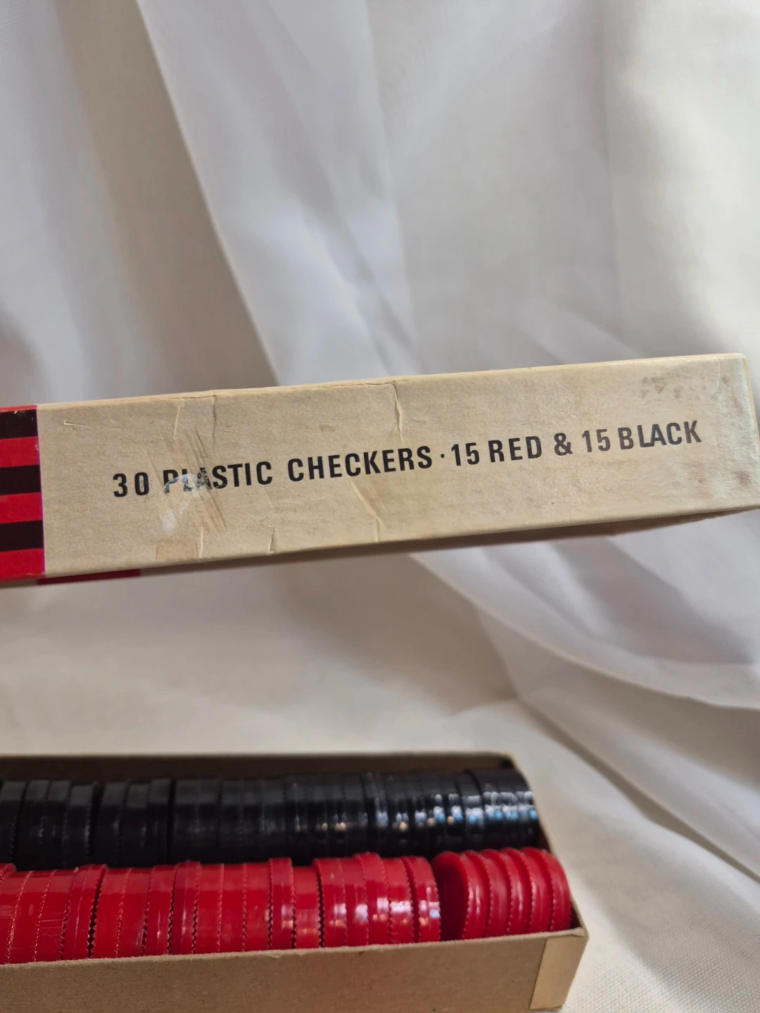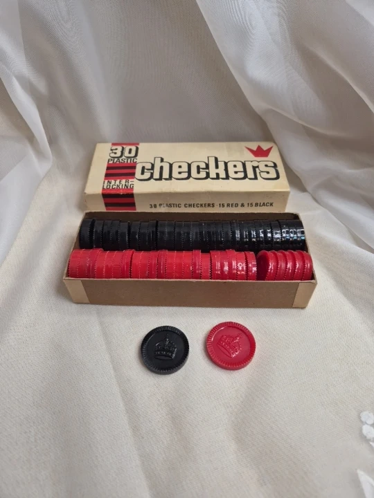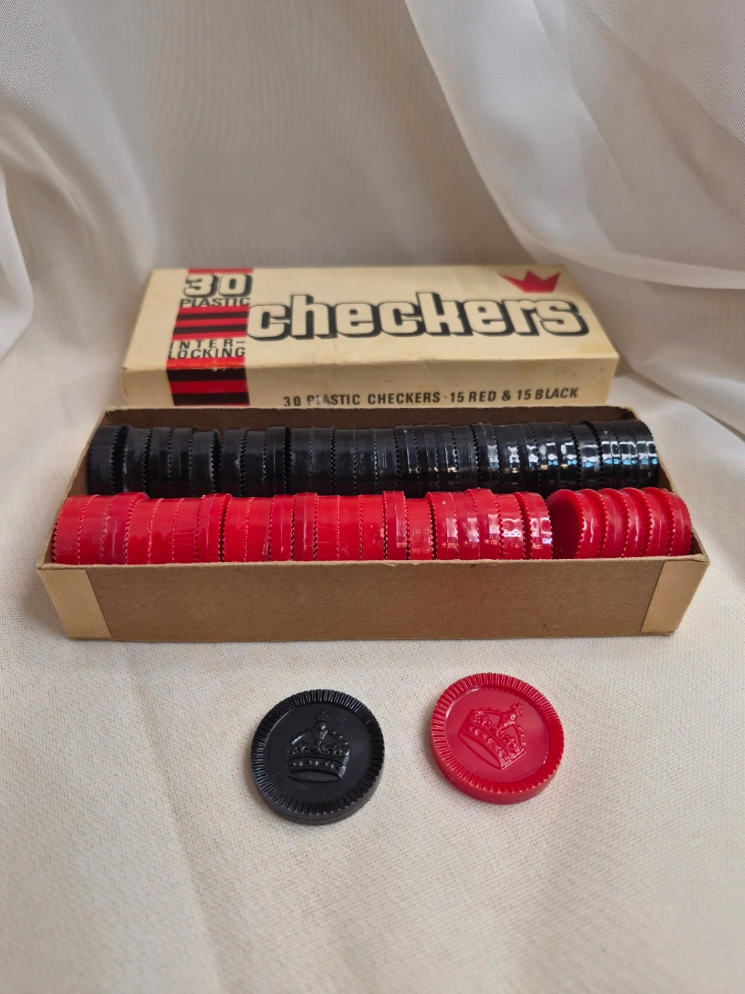 Lot of 54 Vintage Plastic Checker Pieces 27 Red 27 Black - interlocking- Excellent Condition please see all pictures selling all together