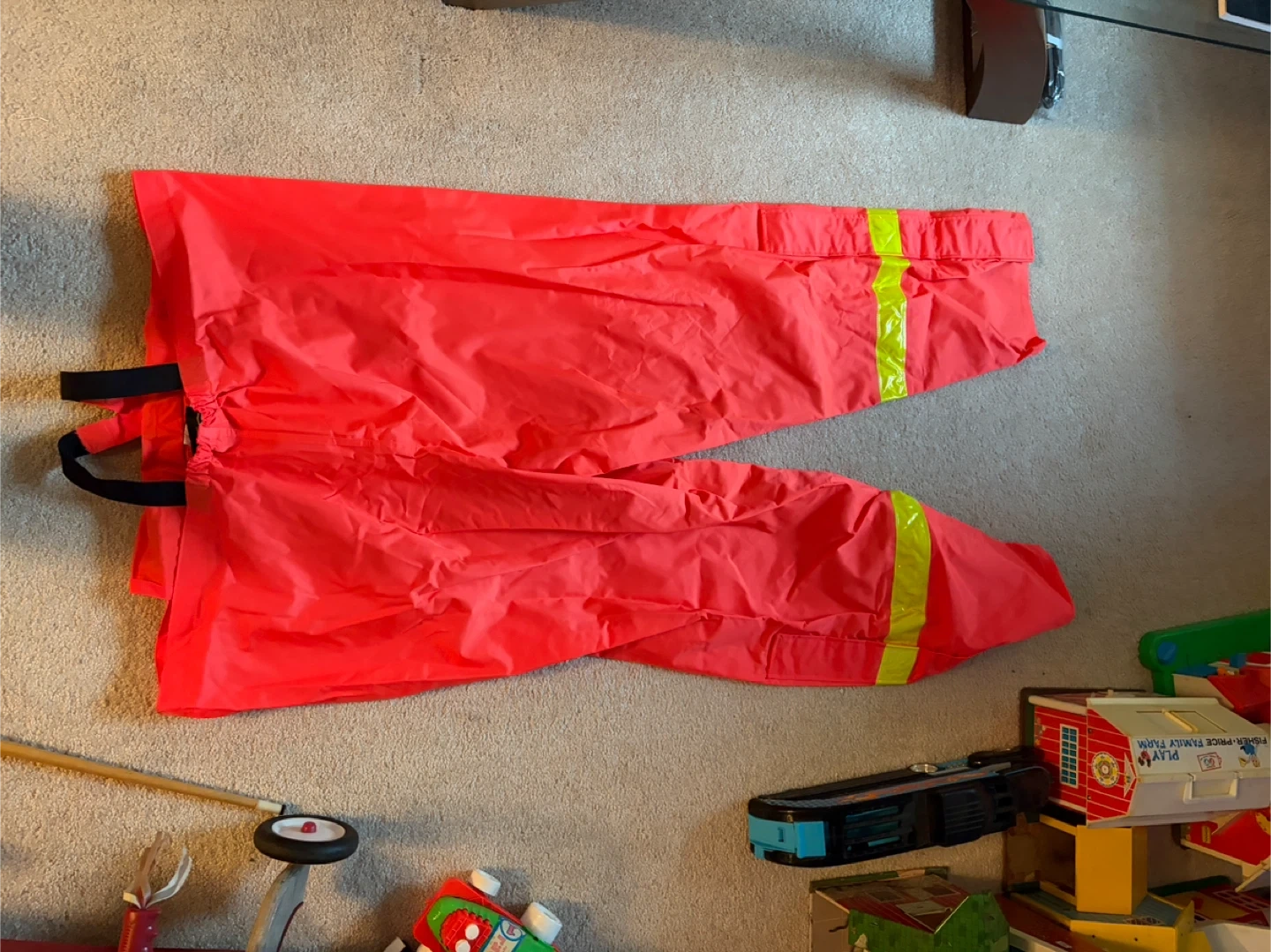Pioneer bib overalls, perfect for staying dry. Made with 100% nylon face and 100% polyvinyl chloride back. Hang to dry and hand wash cool, do not bleach or dry clean. Size XXX-Large.