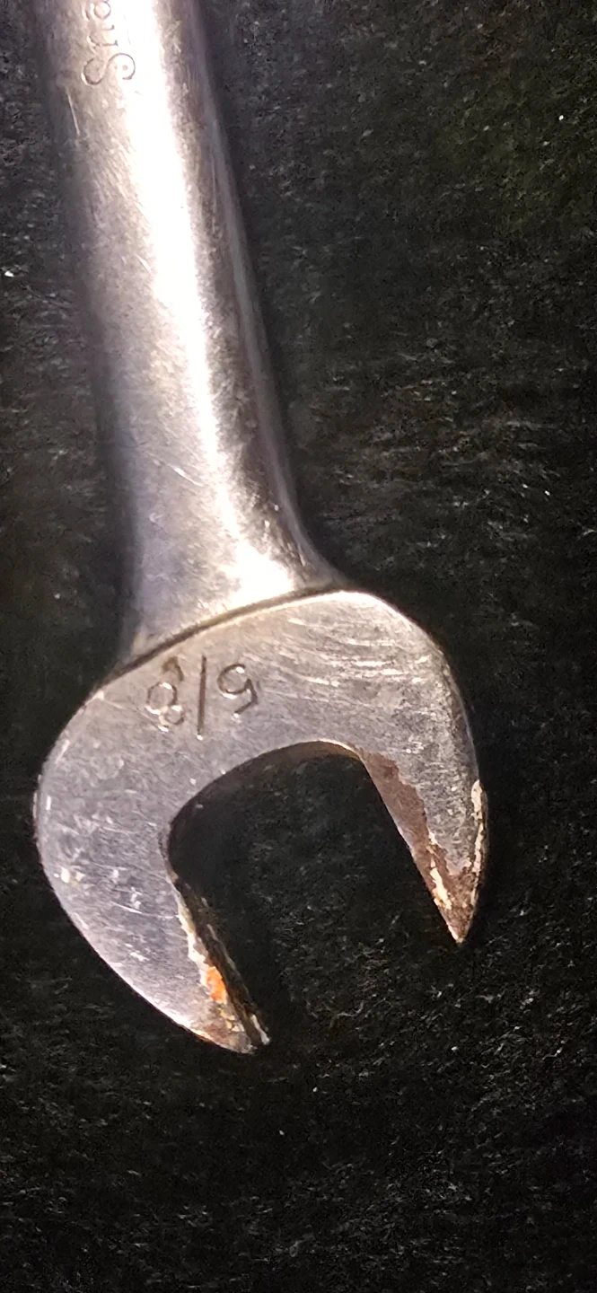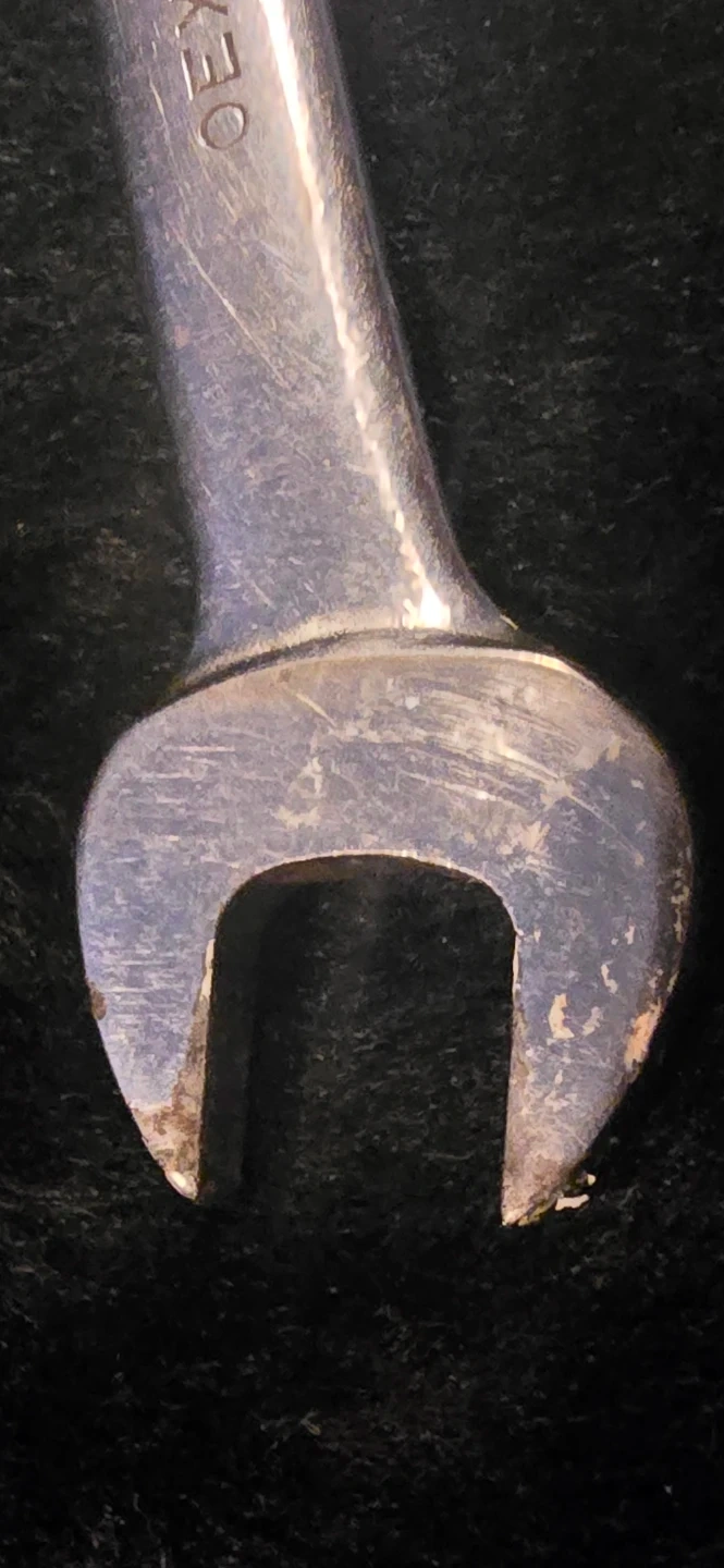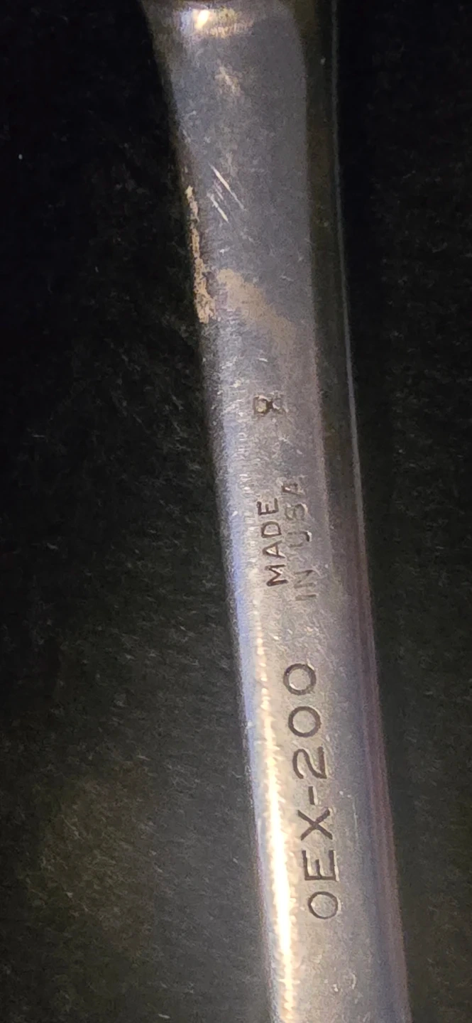 This is a Snap-on 5/8 inch combination wrench. It's made of metal and was manufactured in the USA. The model number is OEX-200. This wrench is a little scuffed up but price reflects that. Pu Surrey 192 st and 60th Ave **$25**
