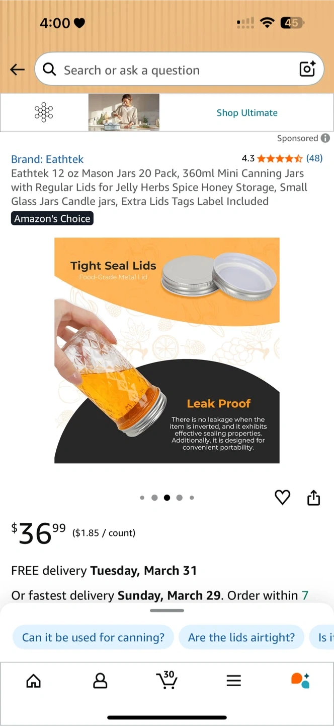 Eathtek 12 oz Mason Jars 20 Pack