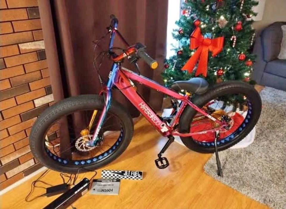 Willing to trade for a kids bike, any style with 20 to 24 inch tire size. Hyper Jet Fuel Series 36v battery assist ebike. 36V/10.4 AH integrated flush-mount battery, 36V/250W rear hub brushless motor, oversized 26in x 3.5 in tires, lightweight aluminum frame, front and rear disc brakes, premium padded and adjustable saddle, alloy wheels and three piece cranks.