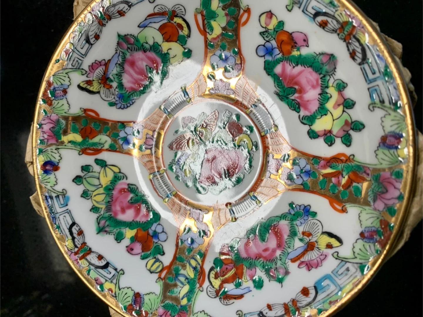 2 Set of 6 Vintage hand painted Rose Medallion Saucers