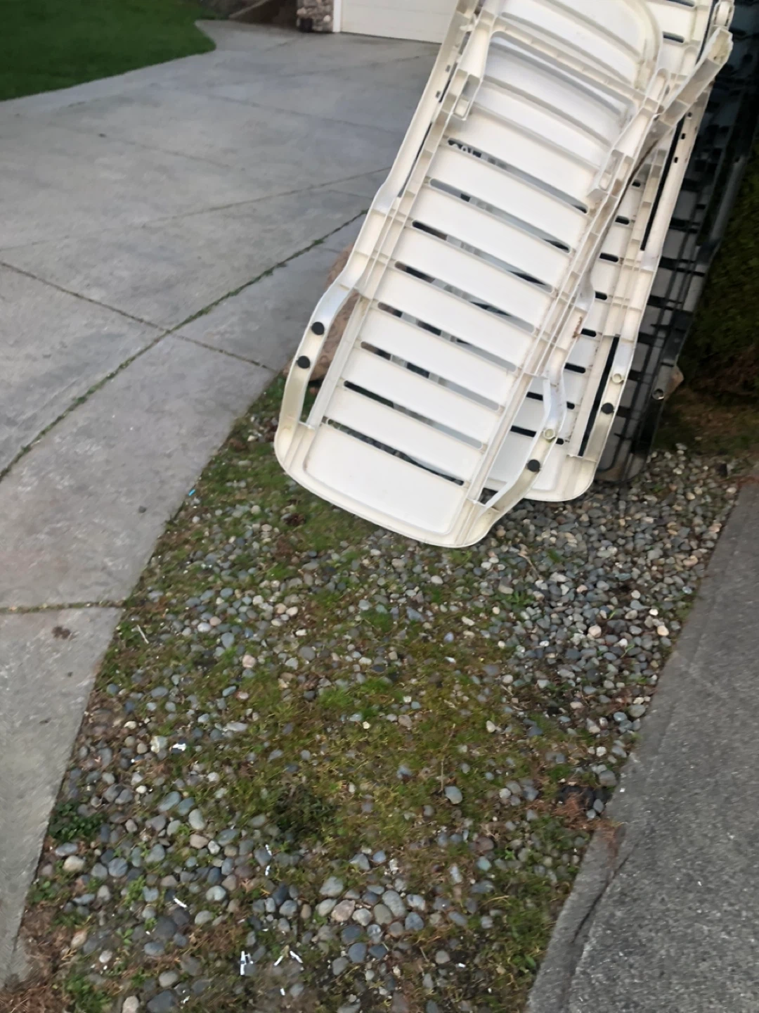 Stack of White Plastic Chaise Lounges