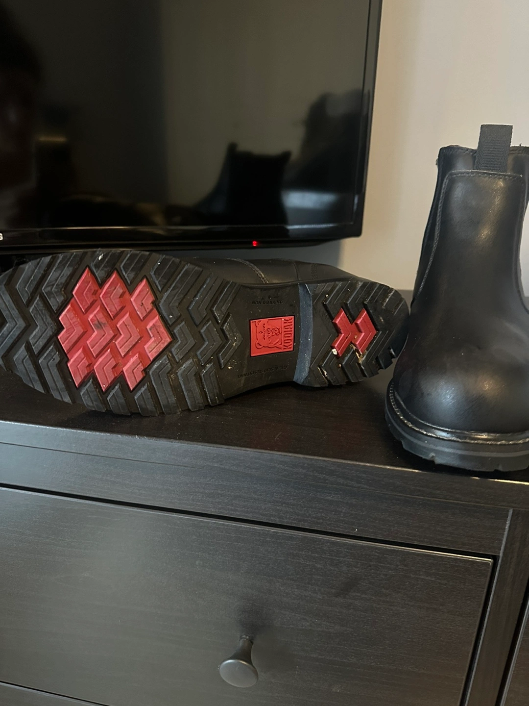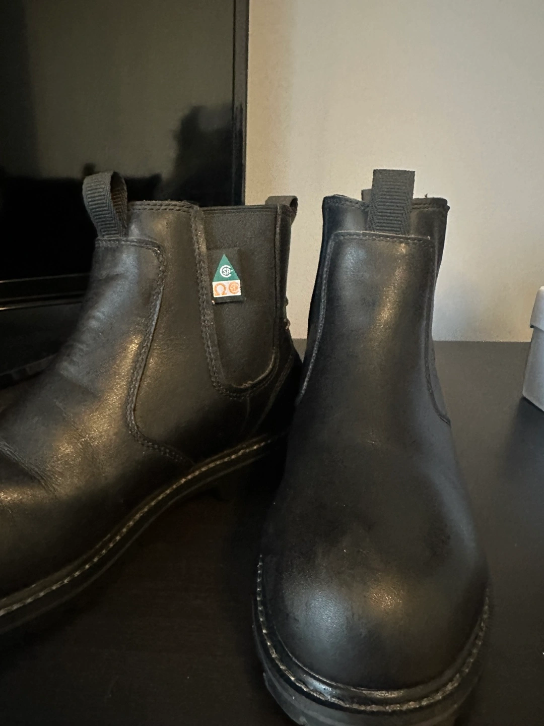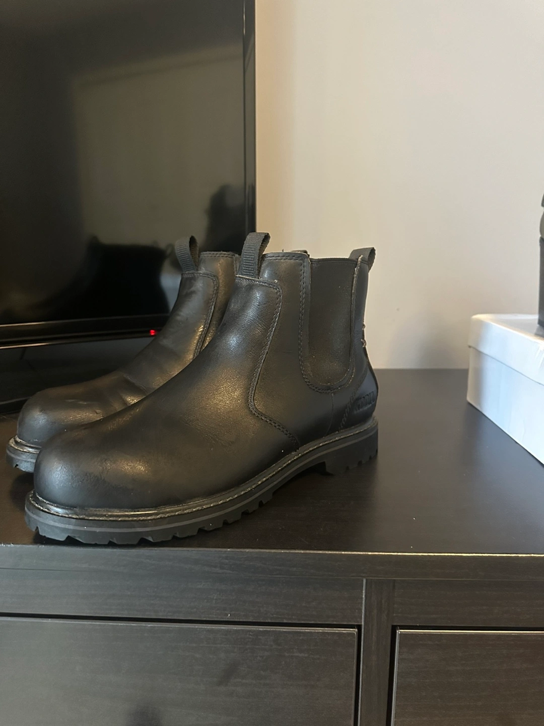 Black leather work boots. Size 8